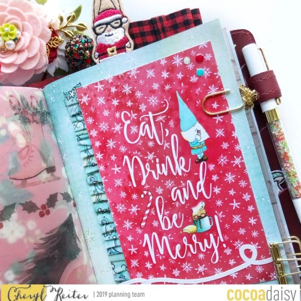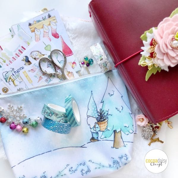 This brings us to December, one of my most favorite but busiest months of the year. Cocoa Daisy’s main kit was winter themed with whimsical gnomes but not overly “Christmas” in case you do not celebrate, however, there was an add on Christmas kit that you could purchase separately. Yes, I bought it and I LOVE it! I love every moment of the holidays and love to document it in my planner – even if my Christmas cards are going to be late again this year. The pouch came with the planner add on kit and I plan on using it all winter long! Gnomes are Scandinavian which is my mother’s heritage and we have always loved them which makes this kit even more special.