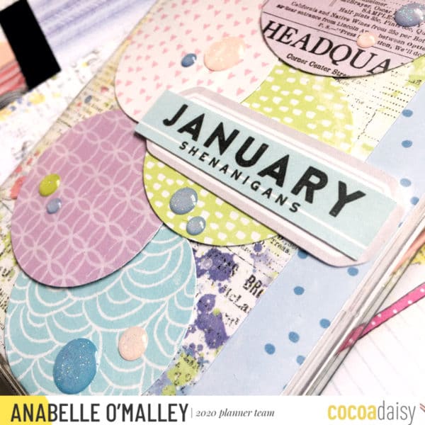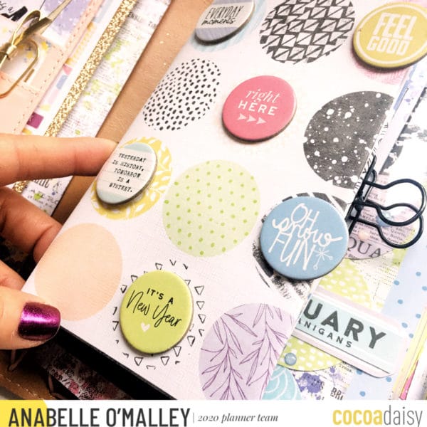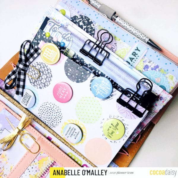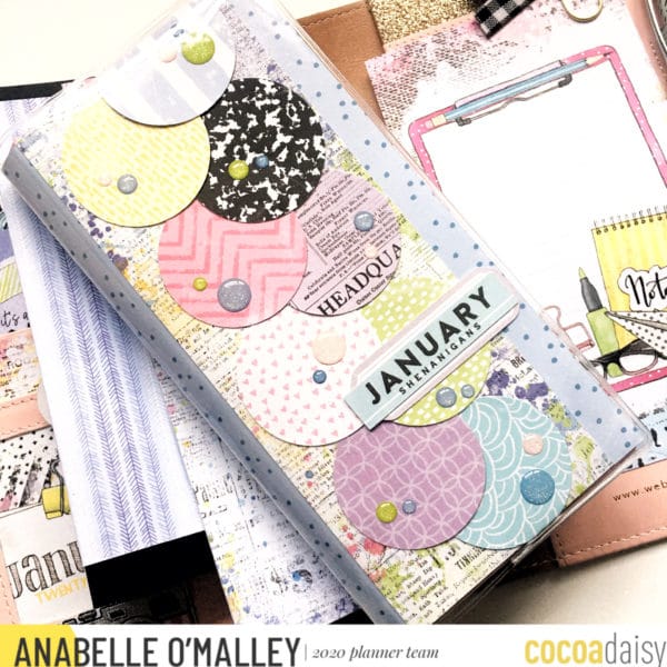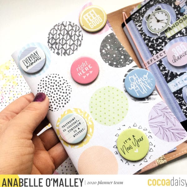 Since I’m using different sized inserts – a pocket insert, the Daisy Weeks insert and a PrintPression weeks booklet,-  I decided that I wanted to tie them together somehow. I did this by using circles as a common element on the covers. It was a fun way to use my supplies and come up with a cohesive theme for my TN.