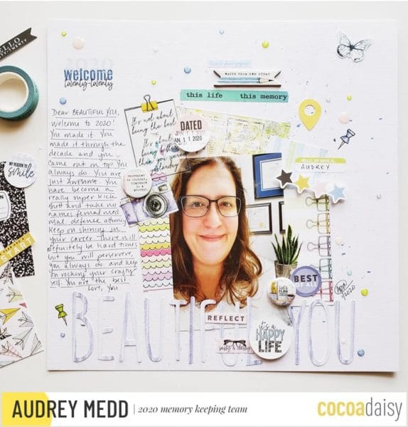Are you always behind the camera or do you get in the photos too? Today we want to encourage you to document your beautiful self. Design team members Audrey and Sabrina are sharing layouts that put them front and center in the story. Let’s begin with Audrey’s story.