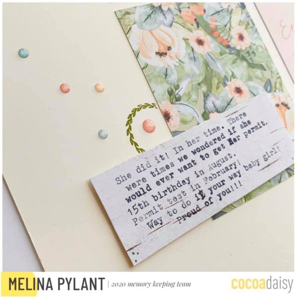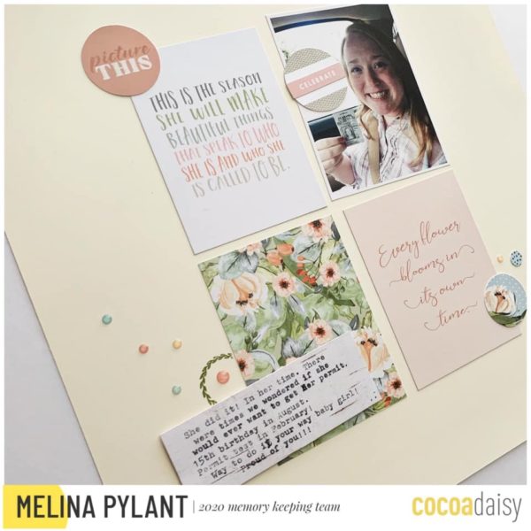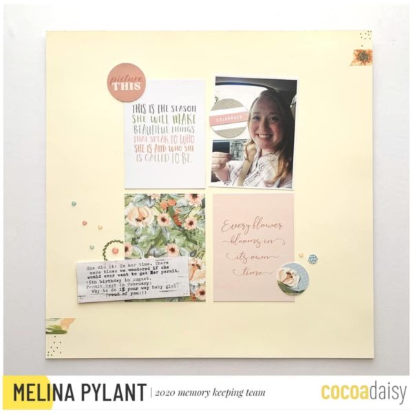 “Once I saw that my IG followers voted more for an across the middle design, I created another circle layout to use for next week. I also added a few circle stickers from the memory keeping sticker kit. I hope these designs inspire you to create a similar circle layout using this lovely spring floral kit. Happy creating friends!”