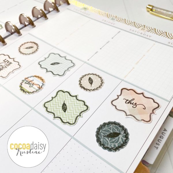 Today on the blog we are highlighting Cocoa Daisy stamps and their amazing versatility! We have three designs to share and they are all using stamps from the Orchard Path kits. Let’s begin with Kristine’s stamping ideas for the Big Happy Planner.