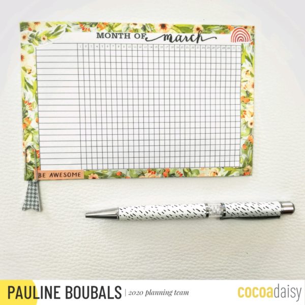 Usualy, I like to use stamps for this one : some from the stamps subscription, and the mini calendar stamp (yes, this one is sold out, but you can add yourself on the wait list for the stamps. If enough people share your interest stamps may be re-edited). But this month, I totaly fell in love with the monthly tracker printable.