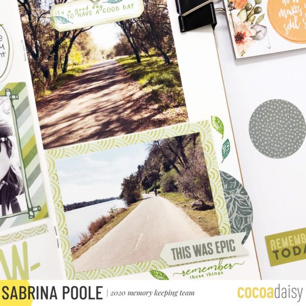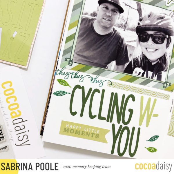Next we have a sweet monochromatic design by Sabrina. “For this project I decided to go with monochromatic green because I knew that I had the perfect photos to go with all the green papers and diecuts in the March kit.”