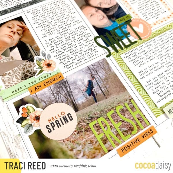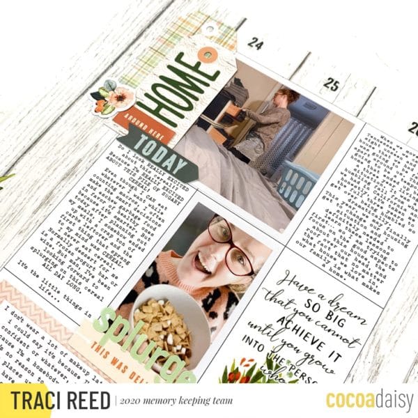 DT member Traci is sharing a layout using a digital template and the Orchard Path kits. “This year, I’m really loving documenting in the memory planner style, I often make my own ‘planner’ pages in Photoshop to better suit my needs”