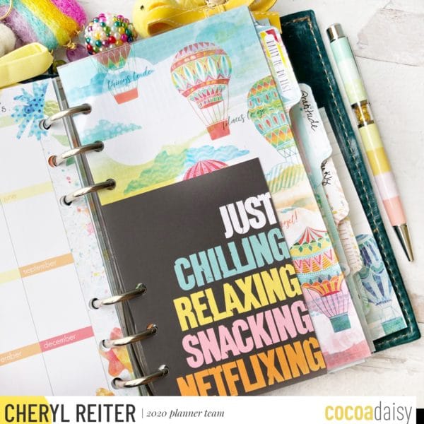 The next section I added, is the “Daily To Do” section from the Planner Kit: Personal Rings. I also included this 3″x4″ pocket card “Just Chilling” from the Memory Keeping: Pocket Kit. The reverse side is blank and I can list the programs that I am binge watching in April. It will be great for memory keeping.