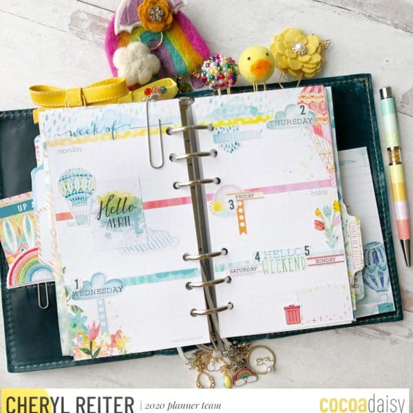 April’s bright and cheerful theme is arriving just in time for this trying time in our world. I am using a Foxy Fix Personal Rings Folio in Spice Mermaid which is a deep teal. It really sets off the colors in this kit beautifully!