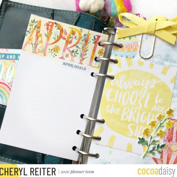 I placed my goals front and center – this Hello April 4″x6″ card from the Memory Keeping: Pocket Kit is perfect! I added a 3″x4″ pocket card from the Planner Kit for added interest before the next dashboard which has the April Calendar.
