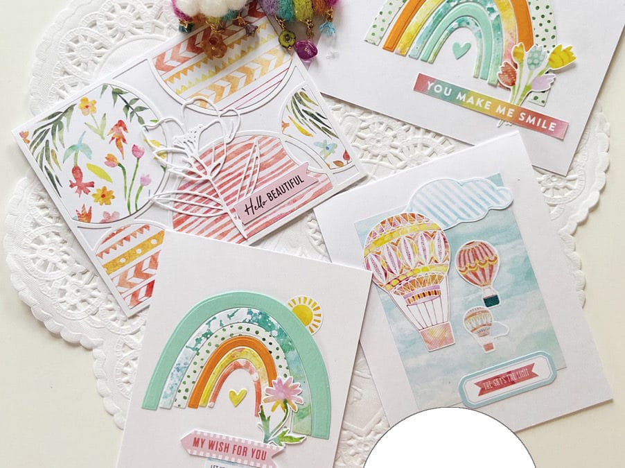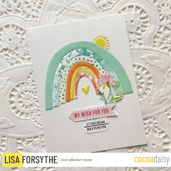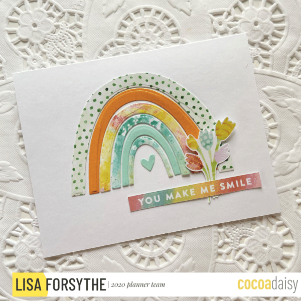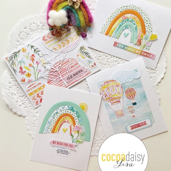 I love using dies and when I saw this rainbow die from The Stamp Market I knew it would be perfect to pair with my Cocoa Daisy papers from April to achieve these cute rainbow cards. I ended up making two of them with left over paper and I love the way they turned out!