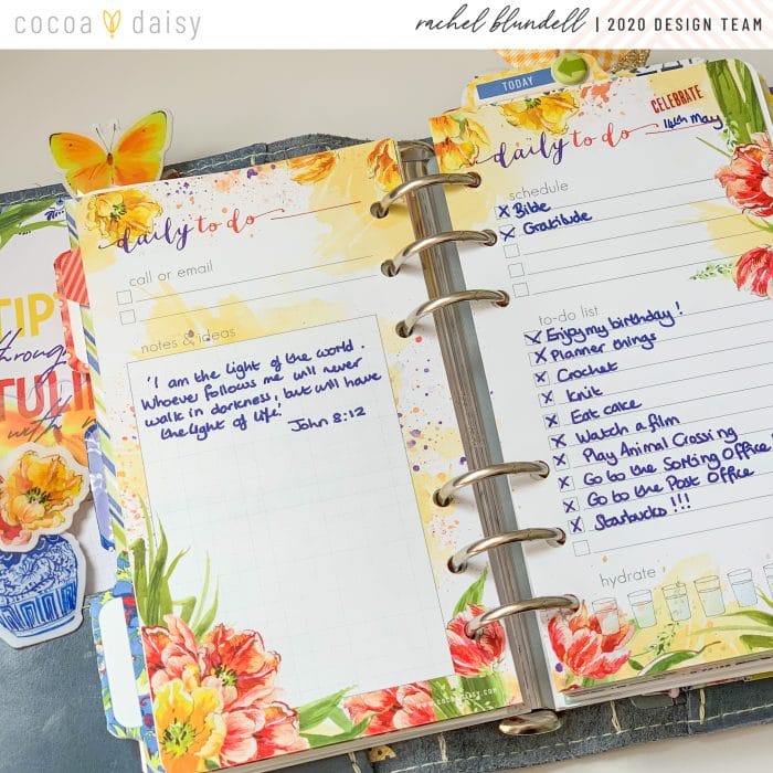 New mercies for a new day with a new start – that’s something that kept me going through some really dark times. Knowing that a new day was coming, and believing for it to bring a new start – that feeling of hope and possibility is somehow embodied in turning to a new planner page each morning. I’ve tried planning everything into a weekly view; I’ve tried putting everything into a week on two pages – but I hate seeing the to do list from the previous day. Especially if it has things I didn’t get done on it – it’s a visible reminder of (in my head!) failure. But a new page – that means I get to start again, and with pages as beautiful as these, that’s just even better!