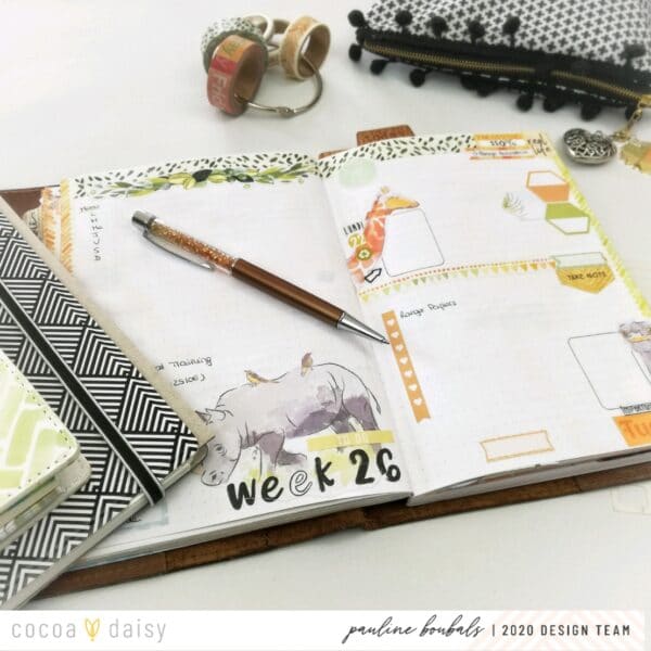 I used a double patterned paper from the planner kit, a card from the planner add-on kit, and stickers from planner sticker kit and classic sticker kit. I love how those stickers allow to make a quick (and pretty !) page.