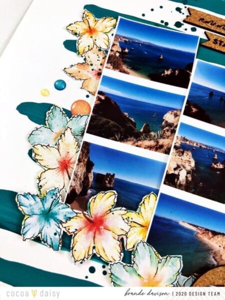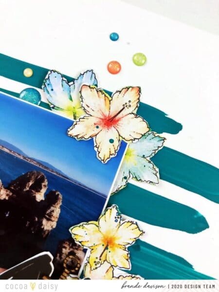 Our final design is from Brande and she is using our To the Sea collection. Brande created a mixed media design and she fussy cut the beautiful hibiscus flowers from the kit papers.
