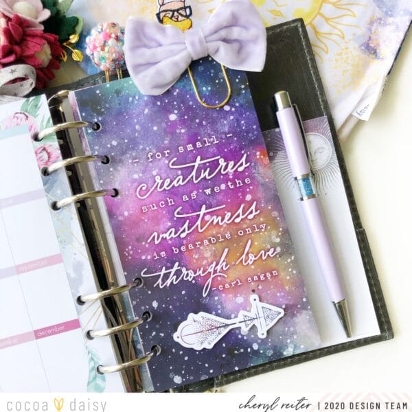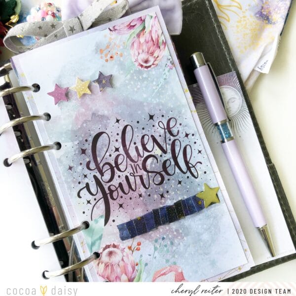 This last dashboard is also from the pre-made Planner Dashboard Kits. This one I did not matte although I usually do. The reverse of this one is the washi tape dashboard up able. The quote on this was so beautiful that I did not want to add too much so all I did was use pop dots on the bottom die-cut.
