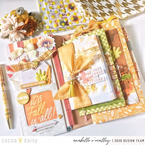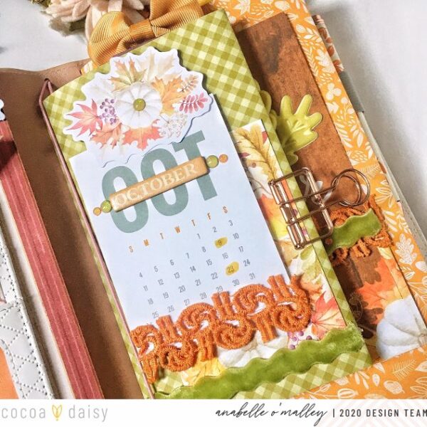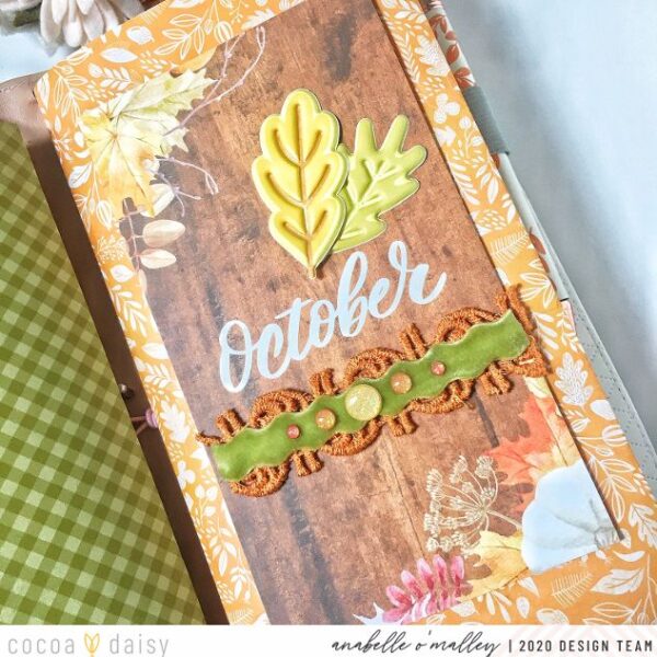 My final insert is a notebook that I use in my planner. Again, I added the folded paper cover. This time, I used one of the personal sized dashboards to decorate it. Once again, I layered the vintage trim and glitter dots. I also used those fun puffy leaves. Layering them gave them even more texture.