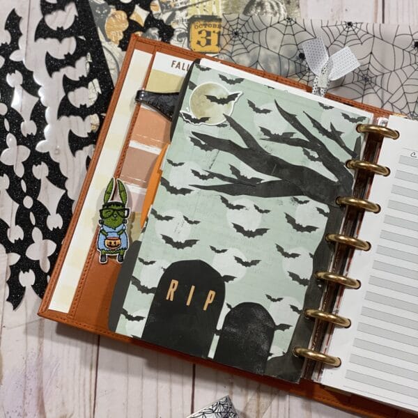 I knew right away my setup was going to be all about the dashboards. In true Coco Daisy fashion, the papers are whimsical, cute and fun for Halloween. To be frank, I love Halloween for the dark and mysterious vibe! However, when I saw the papers that came in this add-on kit, I knew exactly what I wanted to do.