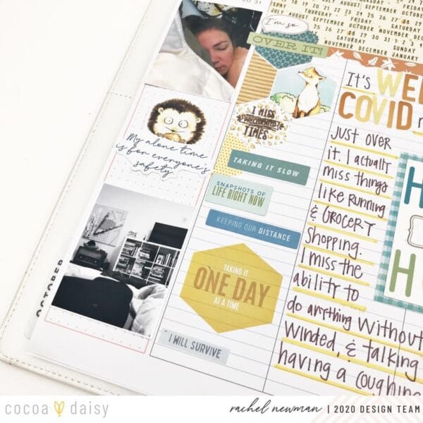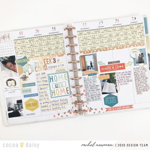“Despite this being a crummy week, I absolutely love how this spread turned out! Looking back, I found things to be grateful for, which made documenting this time so worth it!” Rachel’s thick washi border is such a wonderful idea. It draws you right in to the entire two-page design and it beautifies the empty space in her memory planner.