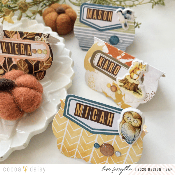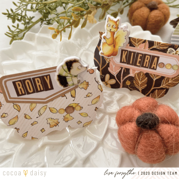 I make table name cards every year for our tables and this year I thought the Acorn Lane kit would be perfect for the kids table. The kids love them and it’s a fun tradition for them that they look forward to. Little projects like these are a great way to use up bits and pieces from your stash.