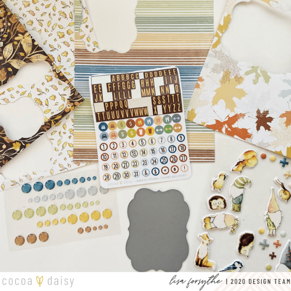 I used a die I had in my stash top cut the shape out of some of the different papers in the Acorn Lane kit. In the past I have just cut squares out and folded in half. Any shape will do!