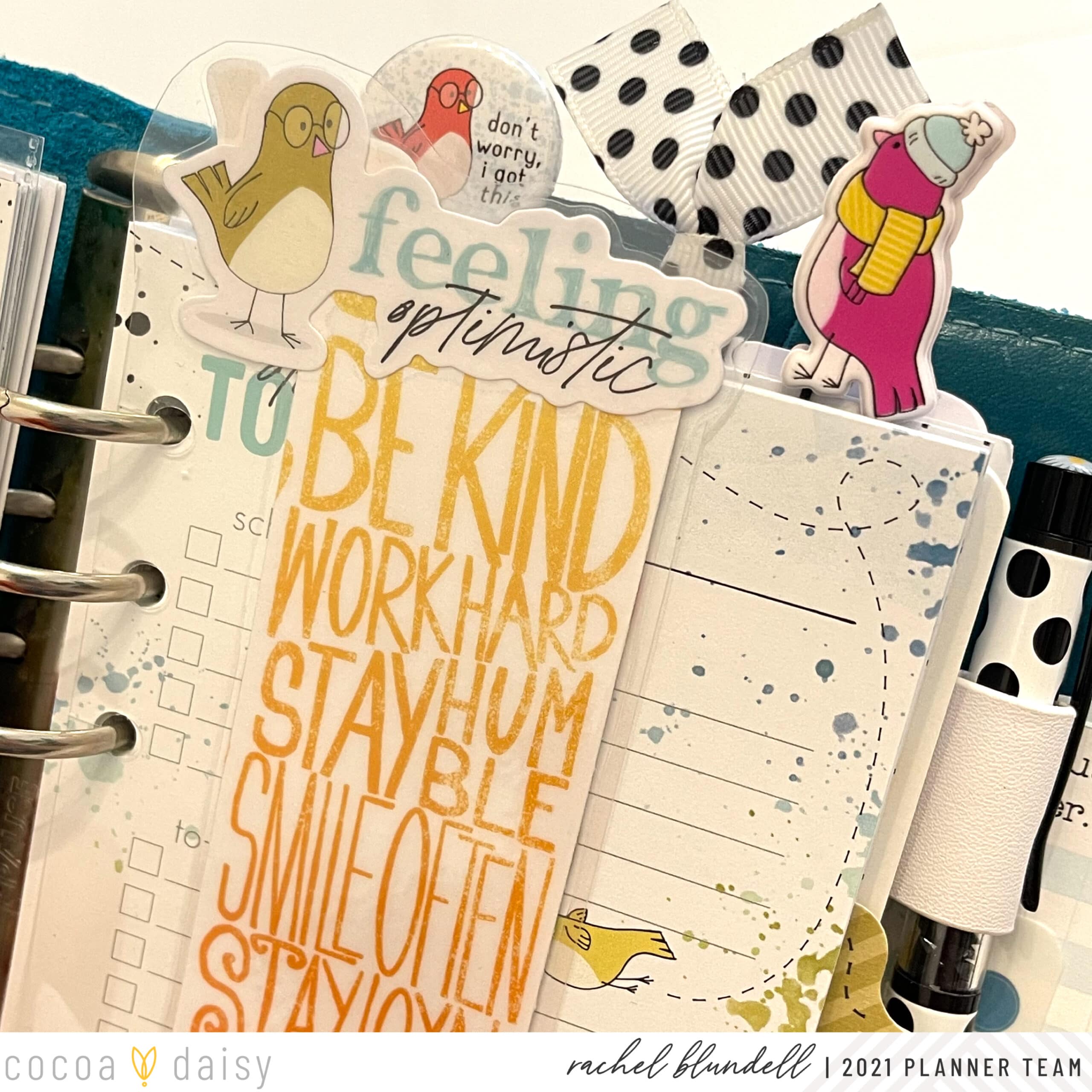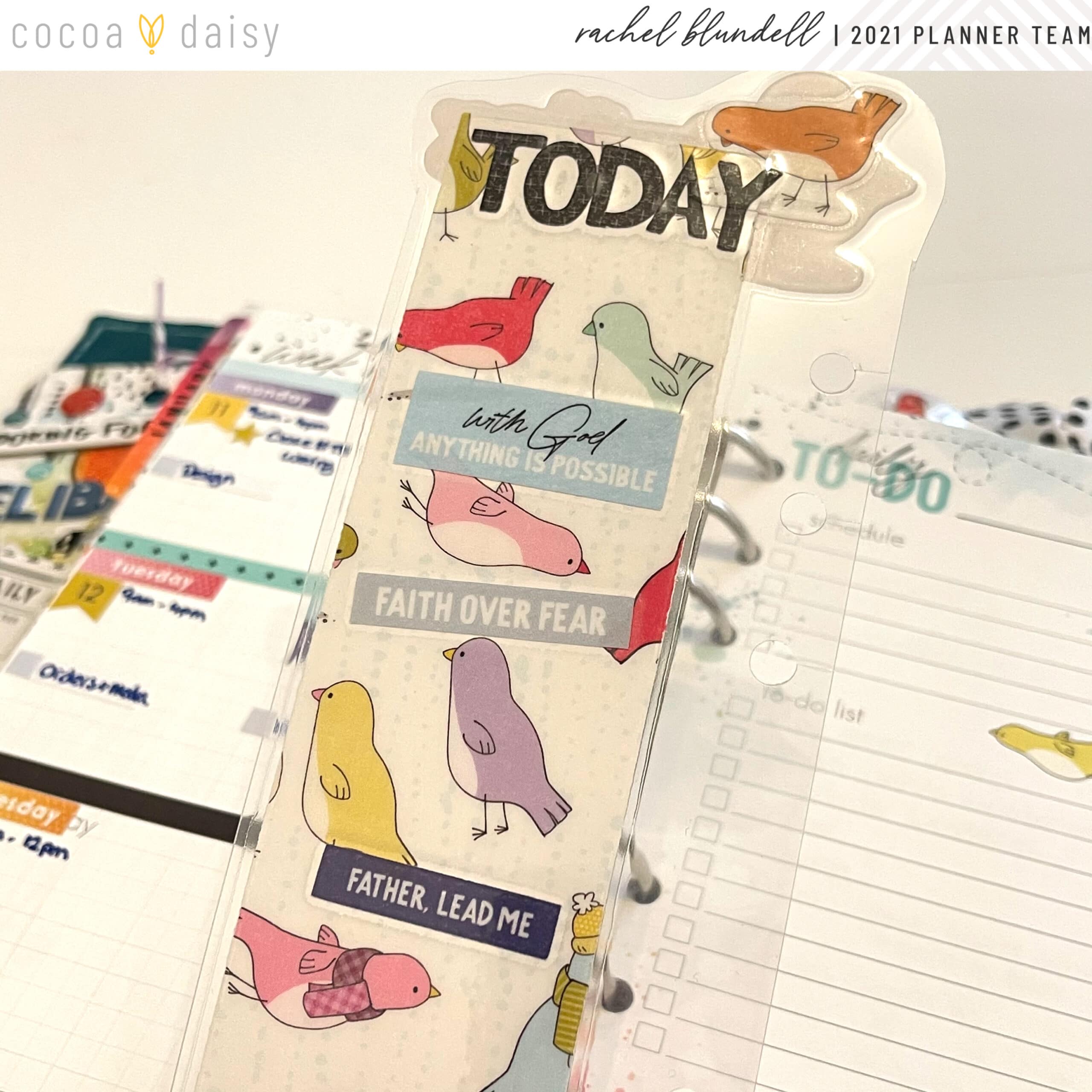 It’s Rachel here, and I thought that this month I’d do something a little different. I absolutely LOVE the birds that Arleigh draws for the Cocoa Daisy kits, and so I’m sharing with you some of the places in my planner that I’ve ‘put a bird on it’!