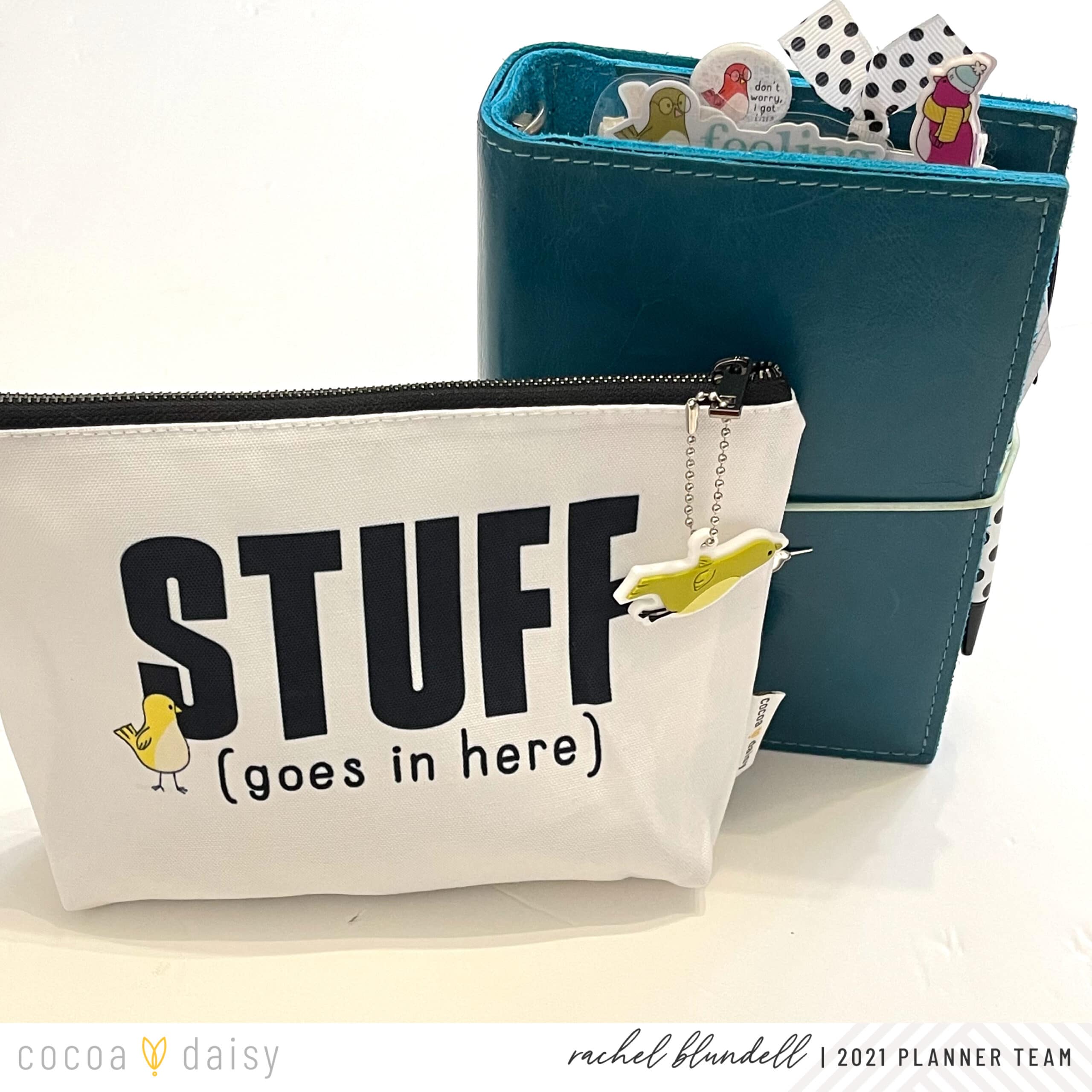 If you’ve seen my unboxing videos, you’ll know I’m not necessarily a fan of the tassels on the pouches – but that’s OK, because there’s always something else I can pop on there! In this case – yep, it’s a bird. This one came in the Classified: Planner Edition kit.