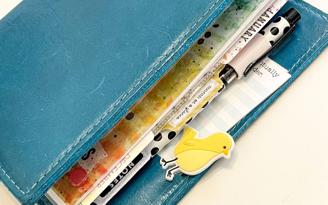 Also with the bird charm was this yellow bird paperclip which I tucked in to the back pocket of my planner. And – how stinking cute are those little legs tucked over the pocket?! It makes me smile when I spot him!