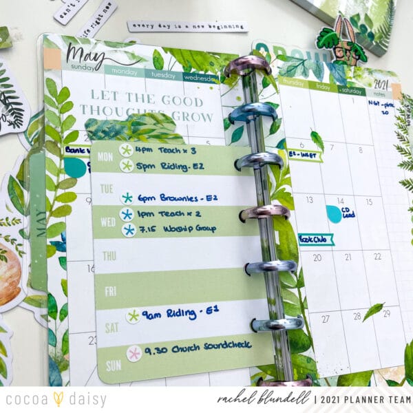 There isn’t a lot of planning real estate on the personal size monthly view – so to save rewriting recurring events I used another pocket card to record what’s happening every day of the week.