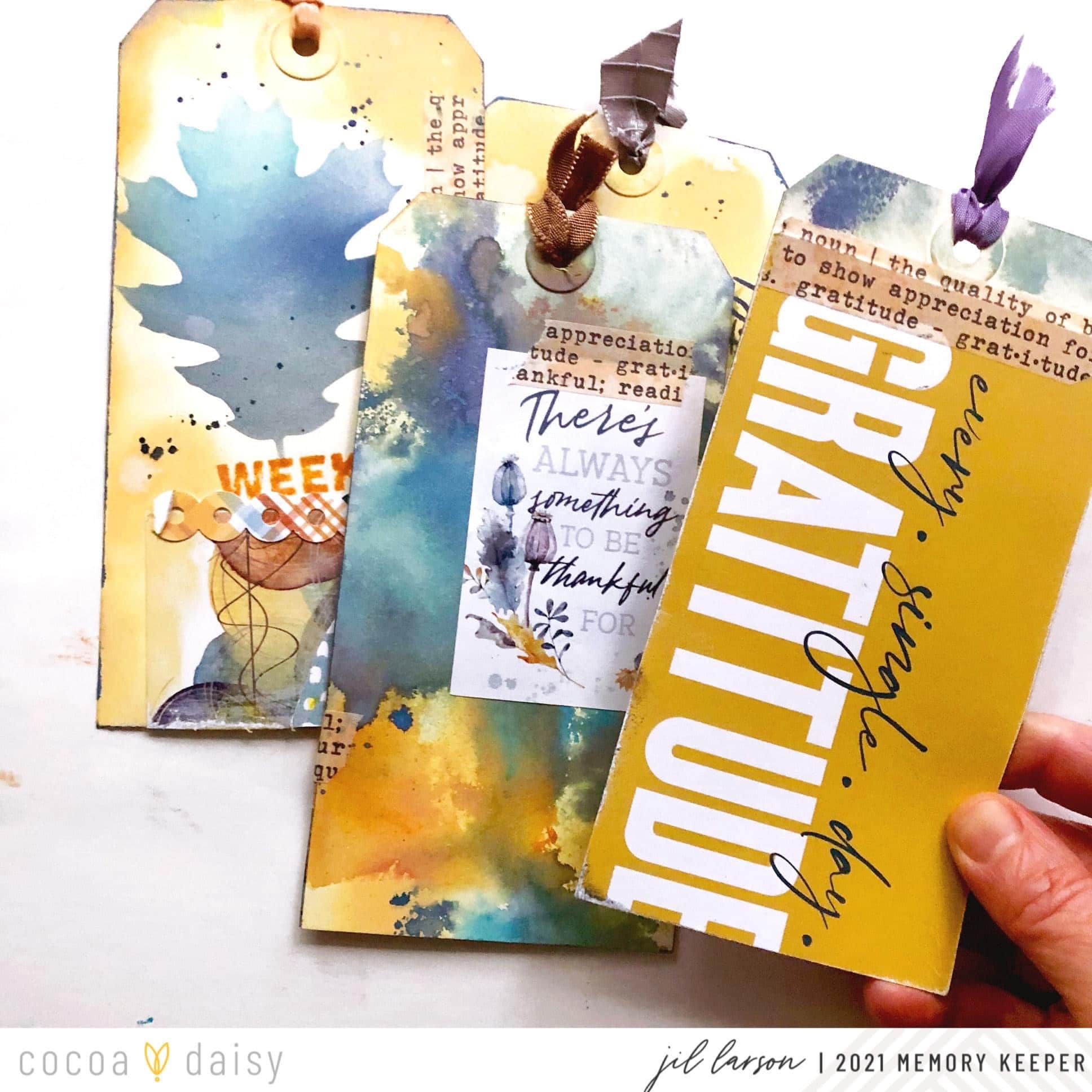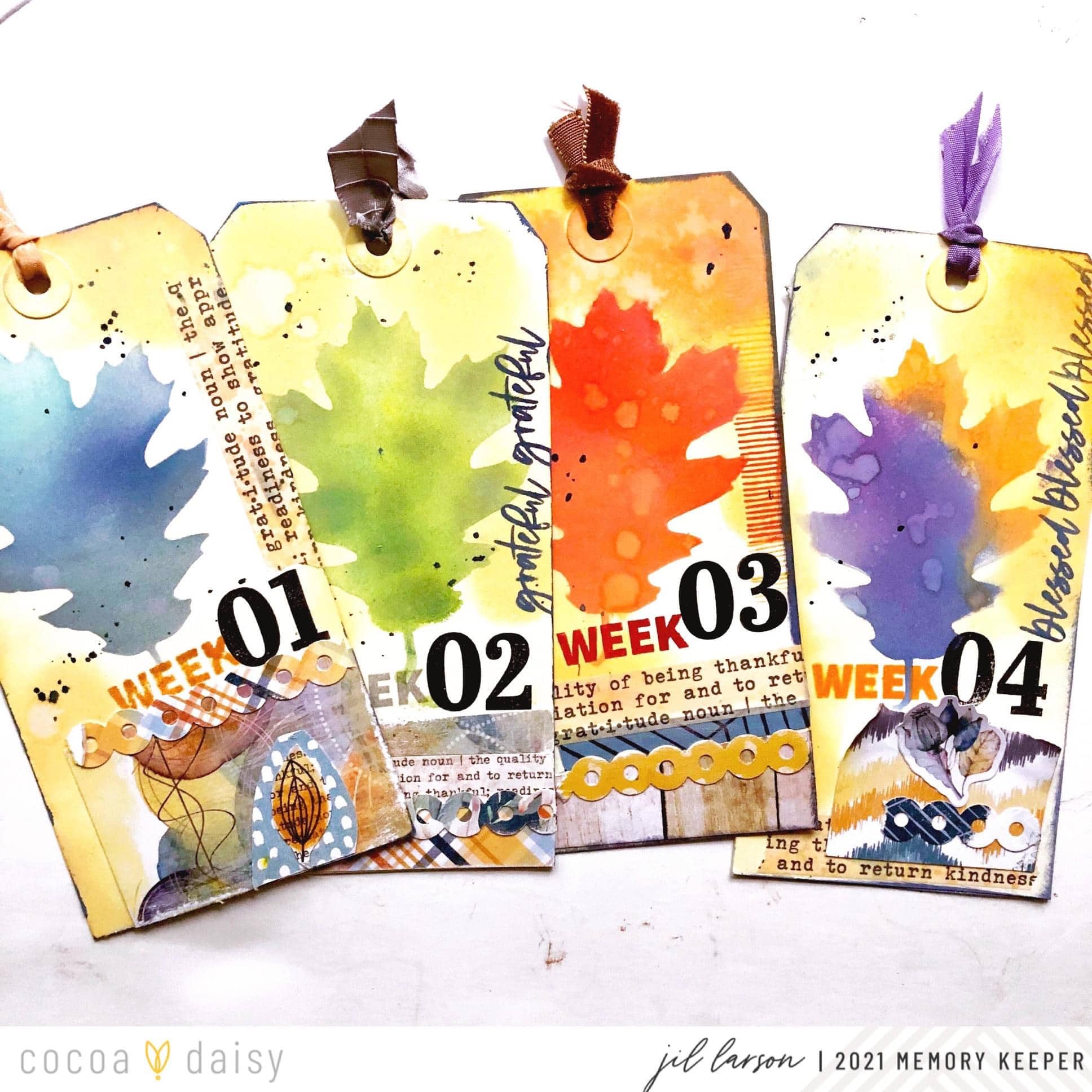 “I used the Gather Collection to make divider tags for a gratitude documented mini book I am planning. The album will probably be ring-bound, so I will punch holes in these and insert them to mark the beginning of each week in November.