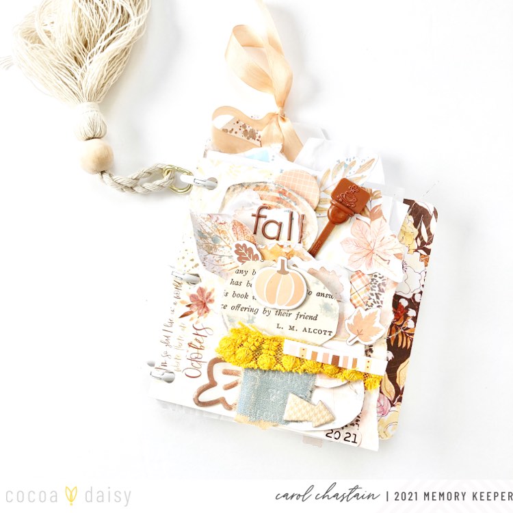 “The white rings found in the Umber & Gold Modern Memory Keeping Kit screamed mini album to me! For lots of texture and interaction, I used this kit and the Umber & Gold Traveler’s Notebook Memory Keeping Kit to include a variety of elements including pocket cards, adhesive pockets, tags, papers, chipboard and die cuts. This chunky mini-book was used to document a week in my life and I love how it turned out. Check out the video below to see me flip through this little cutie!”