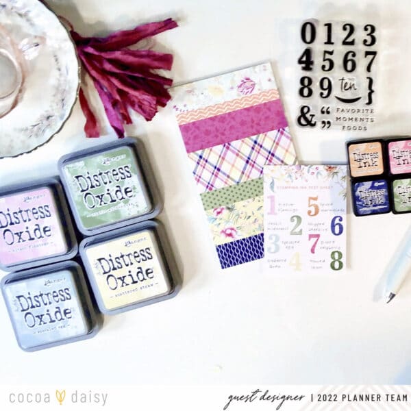 Are you in to stamping in your planner? Samantha matched up some Distress Oxide inks to use with the stamp set. The Main Planner Kit always comes with an pen and ink card to test your stamps out on.