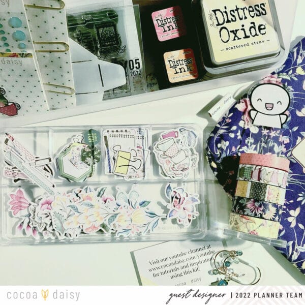 Let’s chat storage and organization! Keeping your supplies out and in view might help you utilize all the elements of our kits! Samantha used an acrylic tray to sort all her die cuts. You can also pick up one our handy planner pouches to take your supplies on the go with you (even if that’s just into a different room of your home!).