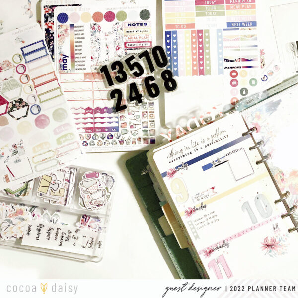 Lastly, I’ll leave you with a little die cut inspiration. It’s easy to layer a few of the die cuts to make a small cluster. These are great for decorating your planner pockets or adding to a page in your planner. Our die cuts are adhesive, so you won’t even need any extra tools or supplies.