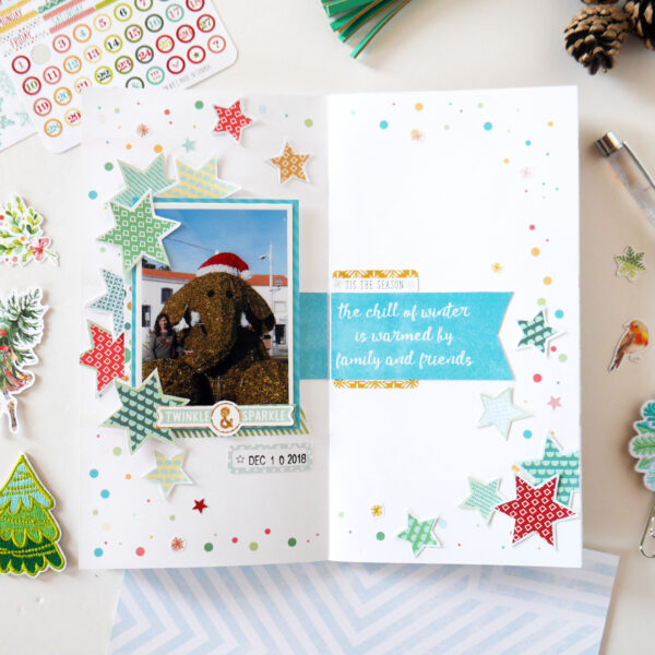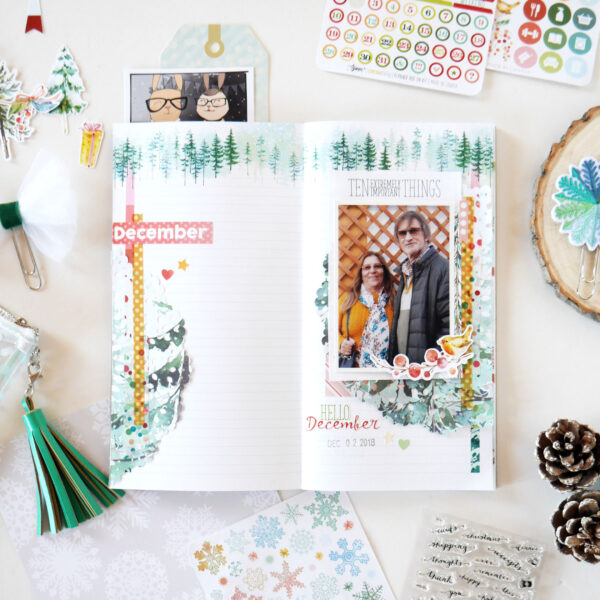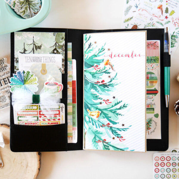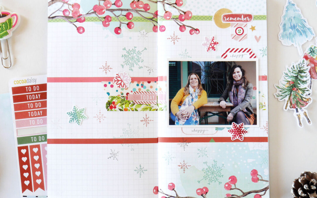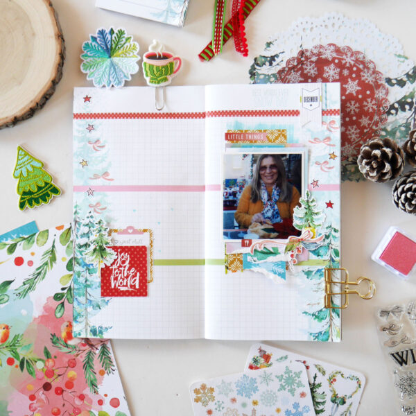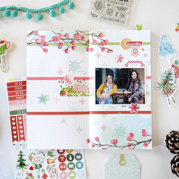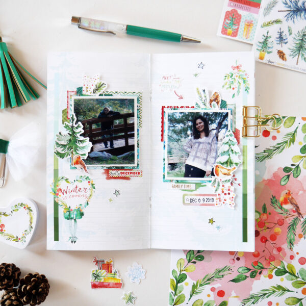 “I’ve started scrapbooking about four years ago and currently my favorite way to document my life is in a Traveler’s Notebook format. And that’s what I intend to do with the Snow Globe kit, using the Daisy Dory planner insert, because planners are not just for planning, right? And I think we can play, mix things up and add a little memory keeping!”