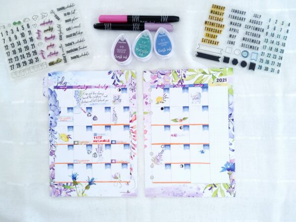 Multiple planners? No problem! We know that a lot of people use multiple planners and we have you covered! Checkout our main planner kit that comes with either no insert OR your choice of 16 different insert options (varies in size and hole punch configuration!). Aurelie set up two ring bound options this month and we think it is fun to see both of them coordinating!