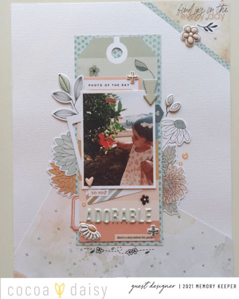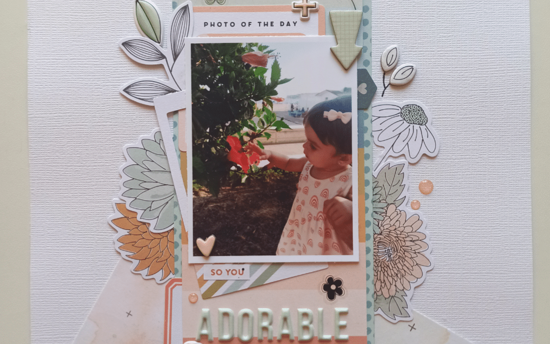 Our Modern Memory Keeping Kit is perfect for memory keeping and scrapbooking in a variety of sizes! Some crafters decide to stick to a traditional 12 x 12 layout (you can pick up our exclusive 12×12 paper kits, here) and some choose to cut down our papers and document those memories in smaller size portions. Belen documented her little Marta doting on some plants in an A4 size and we love the end project.