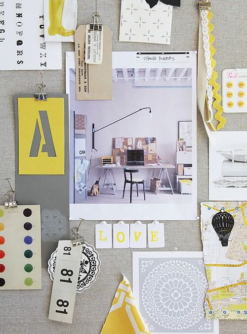 Hello Daisies! It’s Inspiration Tuesday and I thought it would be fun to highlight mood boards {all images found via www.pinterest.com- just type in “mood boards” in the search window for lots more results!} as the source of inspiration today. You can find mood boards of all types, sizes, varieties and subjects. From advertising to fashion, home, food and so much more, mood boards set a tone and create a visual snapshot of a project or idea that jumpstarts and leads to an end result. Think of it as a sort of brainstorming with images. Mood boards can be a wonderful thing for us as scrapbookers/crafters as they lend such inspiration on many levels. Here are a few ways to use them as such in your next project!