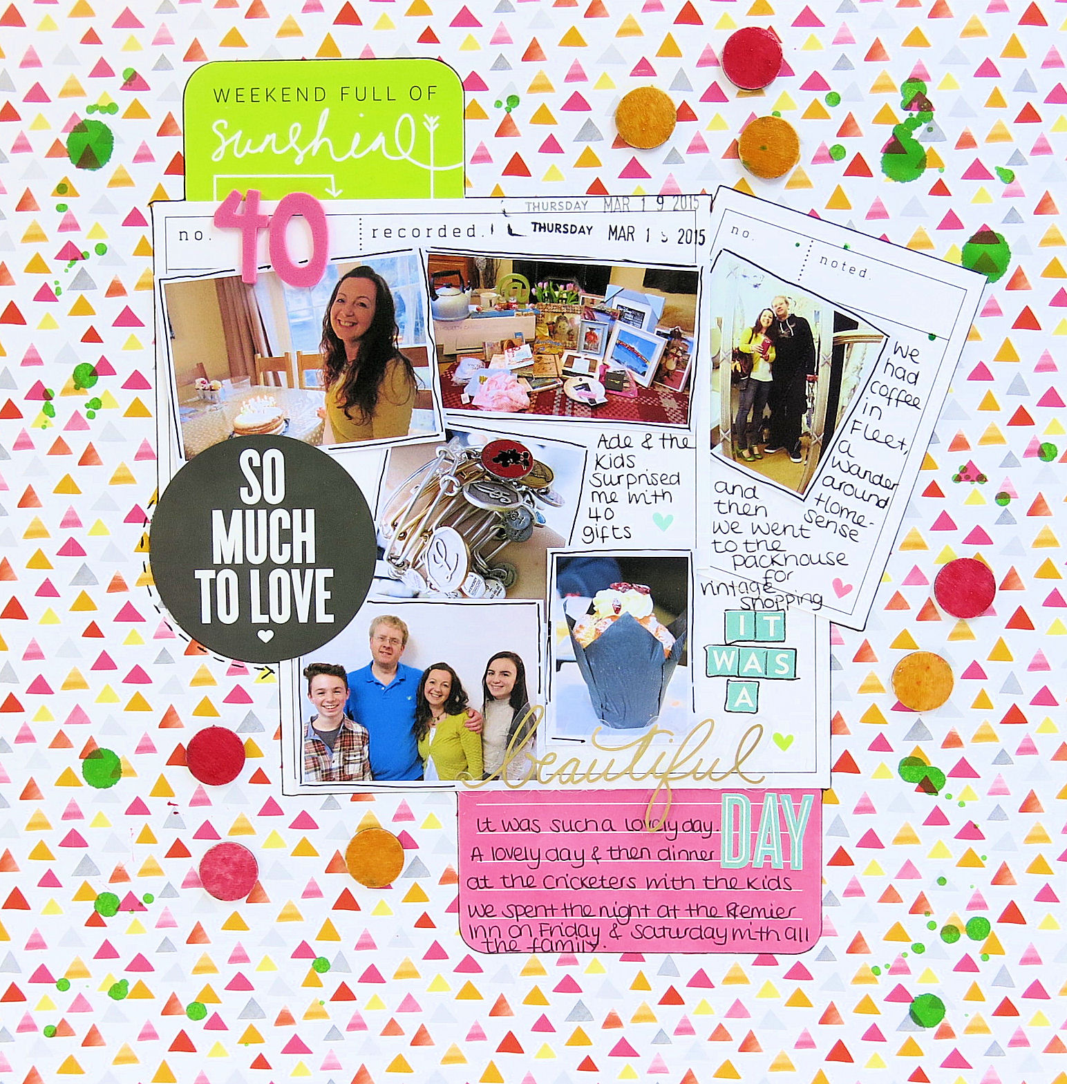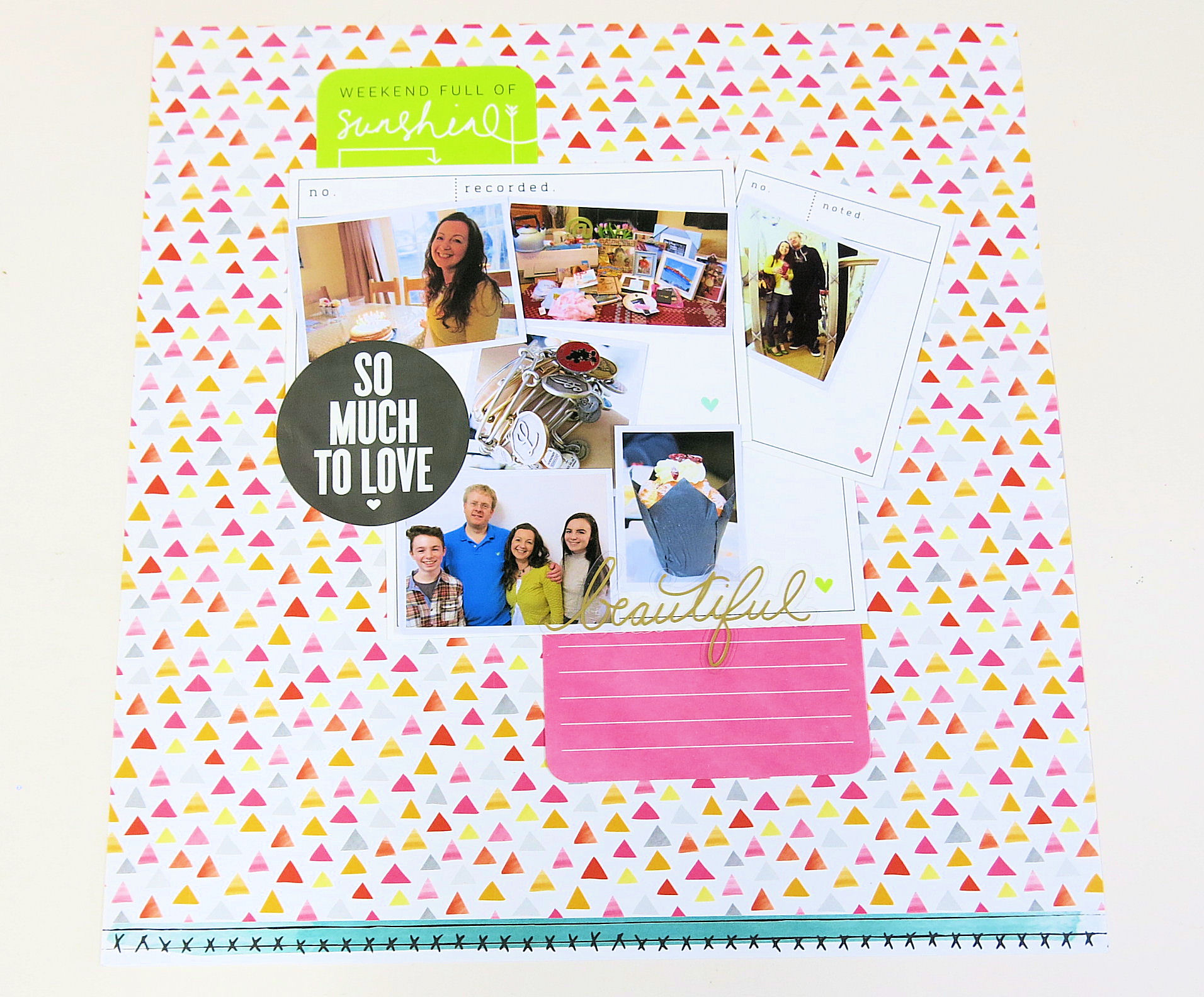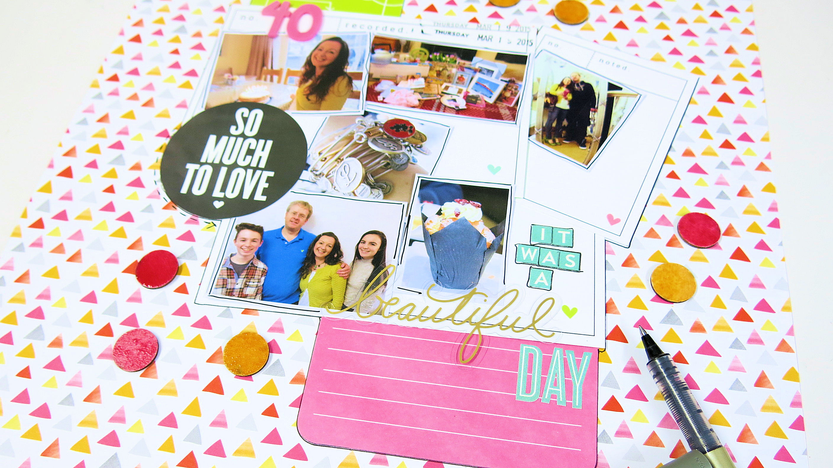 The LO is now finished. It’s bright, colourful, busy with 6 photos.