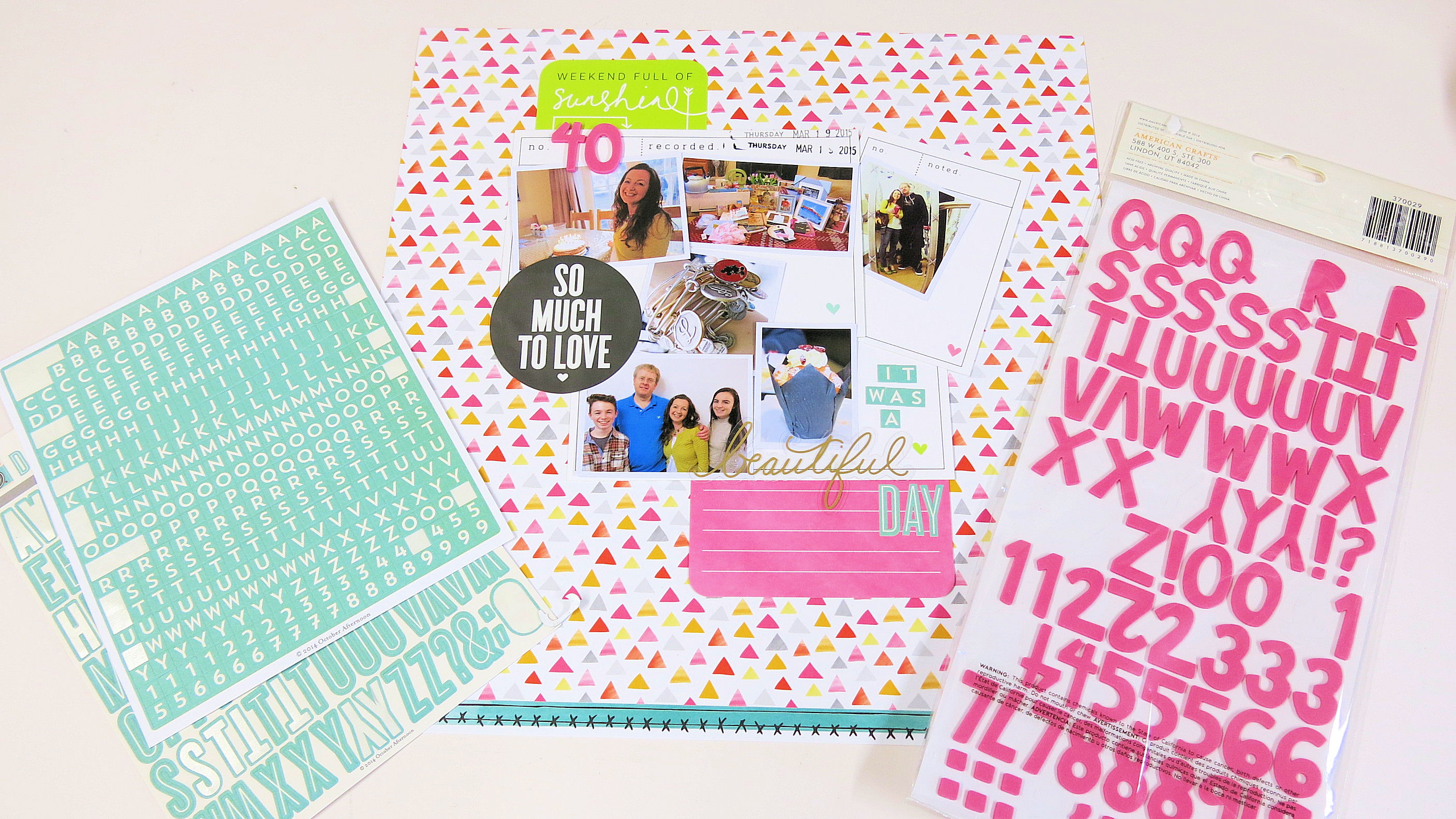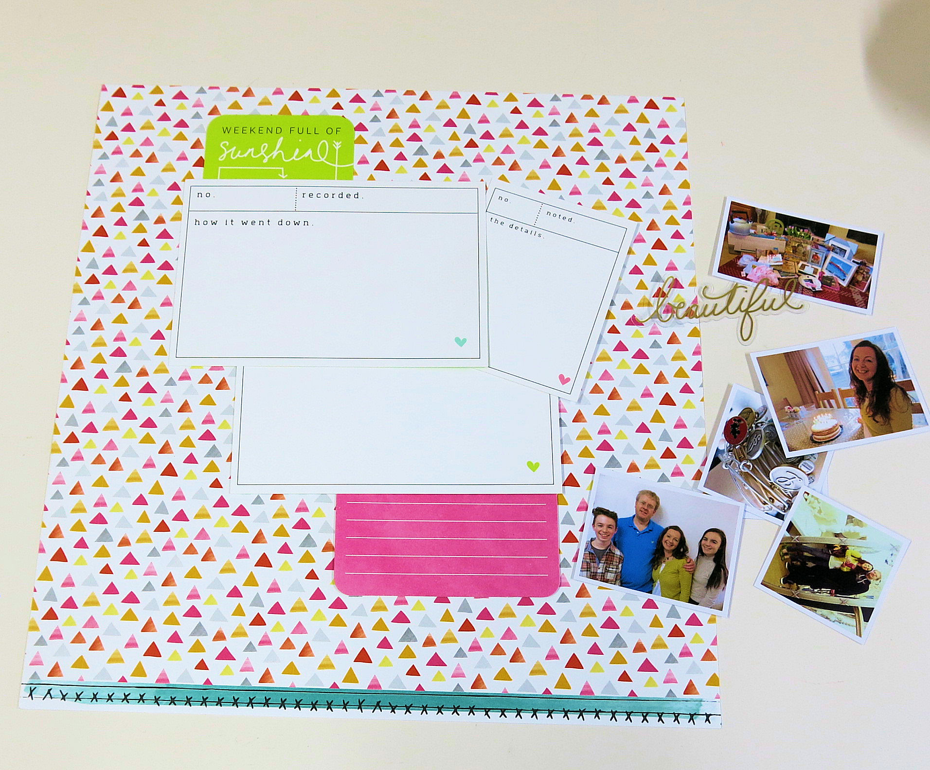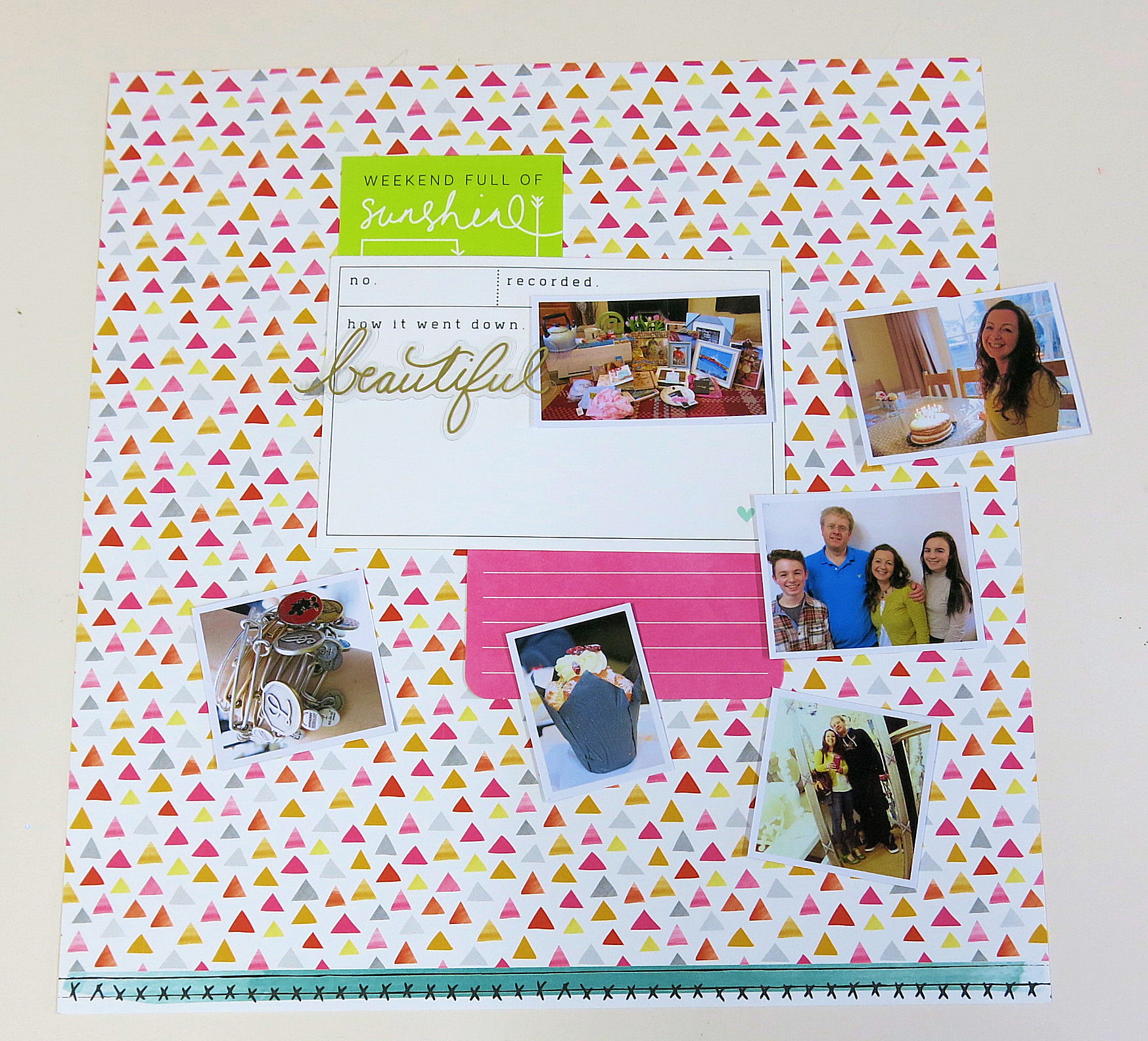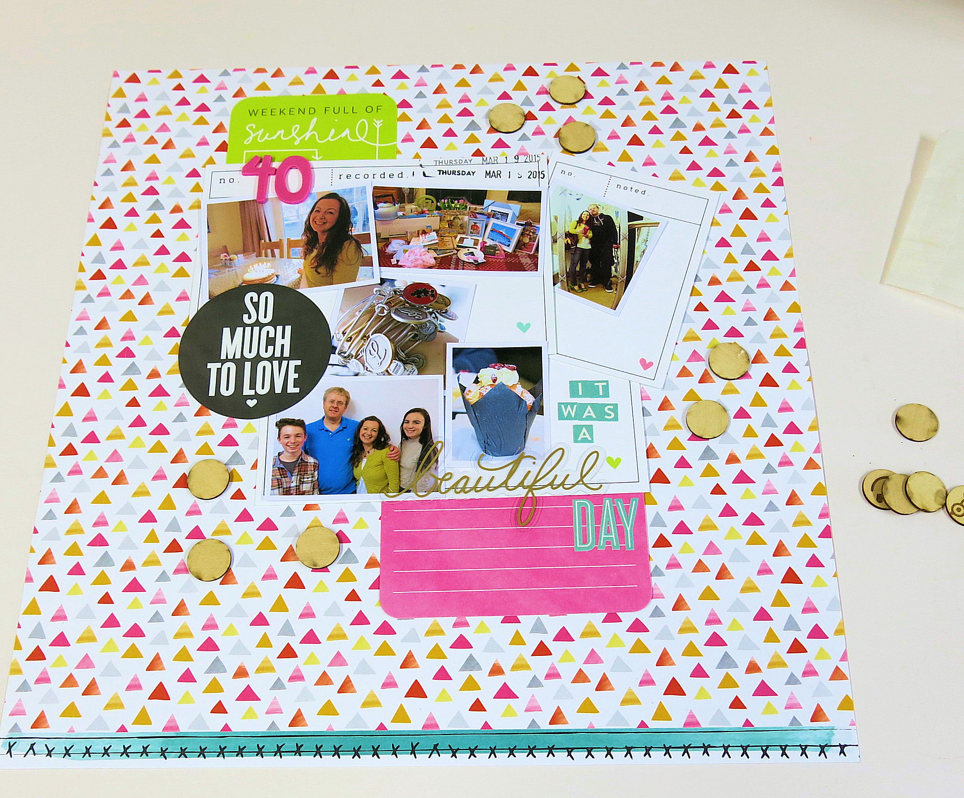 The LO is now finished. It’s bright, colourful, busy with 6 photos.