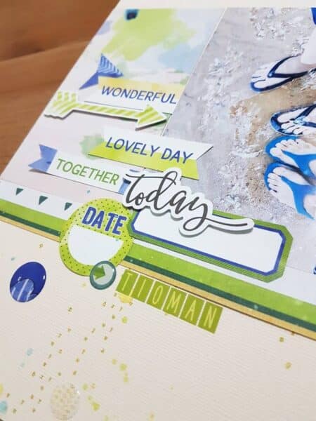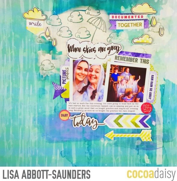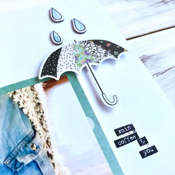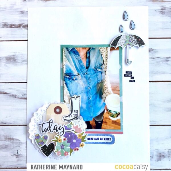 Katherine used a phrase from the Memory Keeping Pocket kit that just fits perfectly under than umbrella.