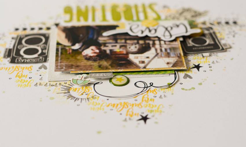Celine frames her layout so well with a stamped background using two different shades of yellow.