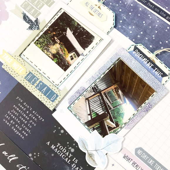 This is basically journaling that’s hidden on a page. Sometimes it can be something quite personal and you don’t want it right there on the page, but it’s still importation to be there. Sometimes it can quite simply be that your page looks so lovely and you would like the journaling hidden.