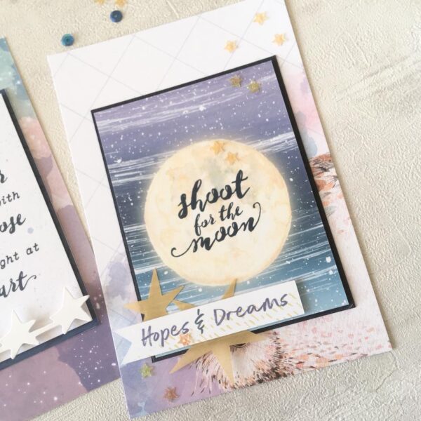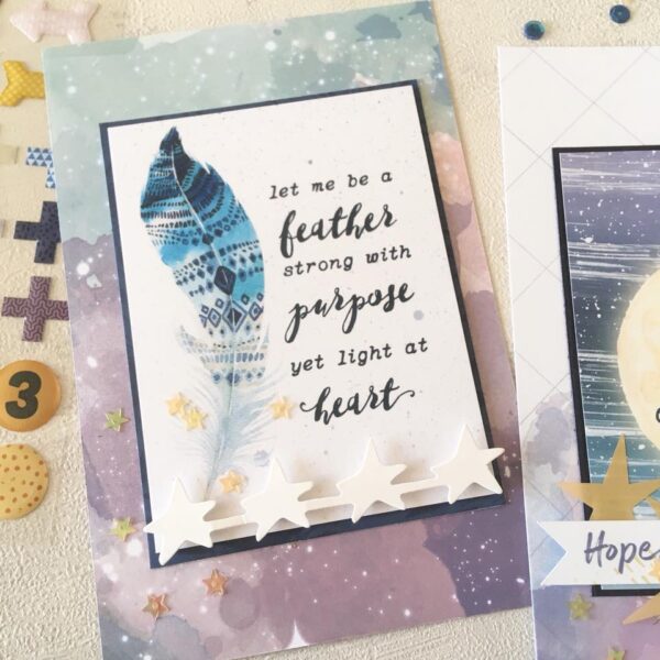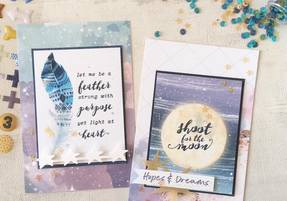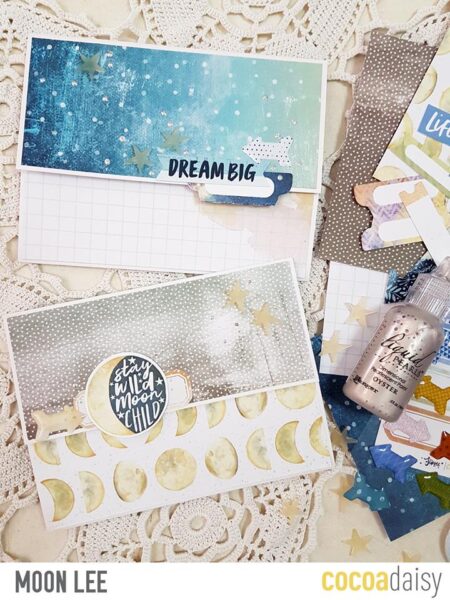 Next are Moon’s cards: ‘here are my simple cards featuring August memory pocket kit!’.