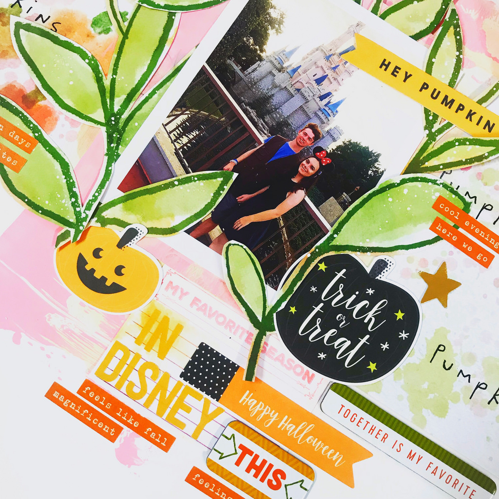 The post is all about how the golden leaves inspired this page. But after I made the page, I was so happy with it and it came together so easily, so I decided to kind of scraplift my own design and create another 12×12. I just enjoyed myself so much. This time though I filmed the process of this page being made which you can watch here.