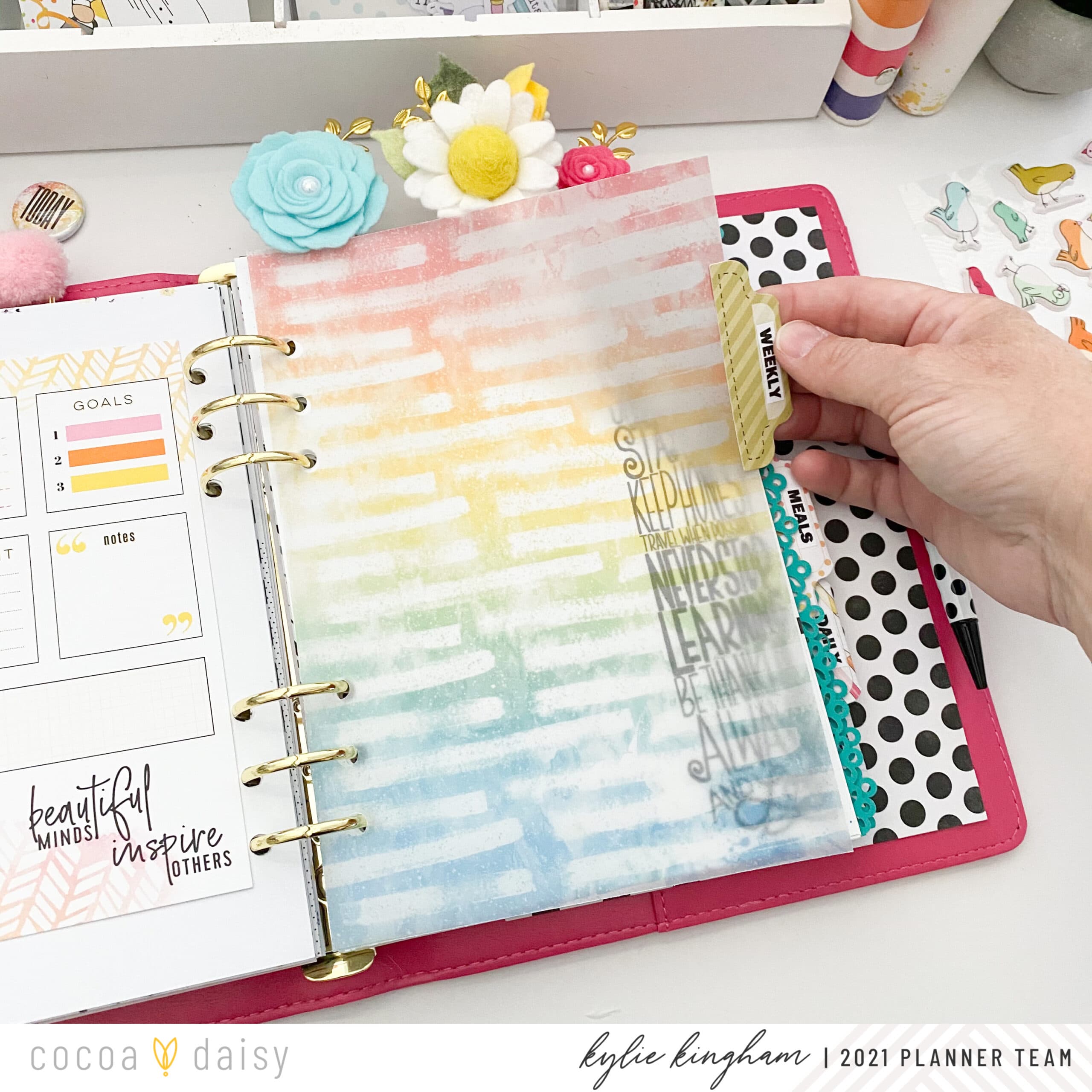 Another firm favorite for the month has to be the exclusive paper printable. I love the rainbow of colours ! For something different I actually printed mine onto some vellum and cut it down to A5 size to create another decorative ‘tip in’ or divider in my planner. After I had added it to my pages, I thought it would of been fun to fold in half and make a pocket from it as well. Maybe that’s an idea for my set up next month!