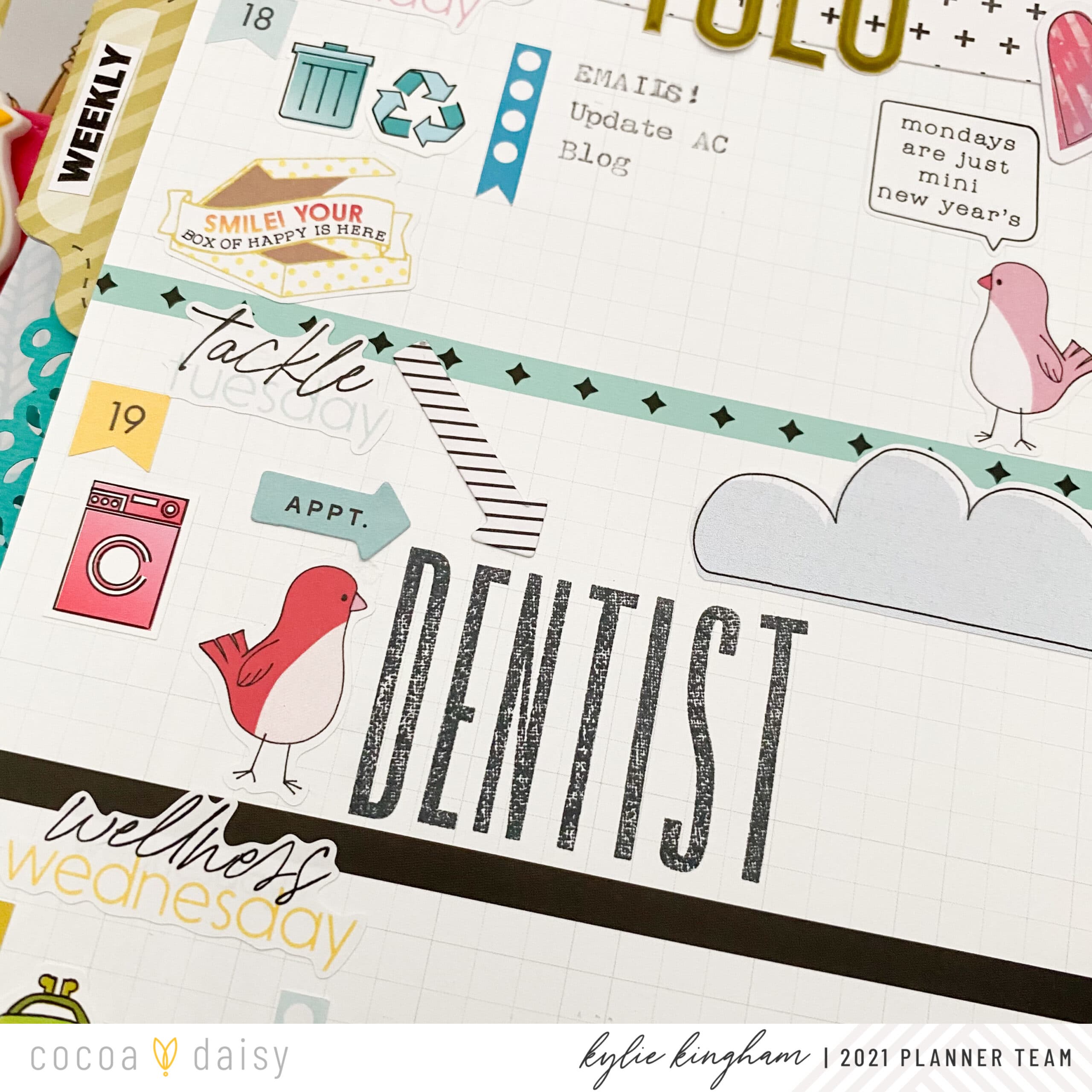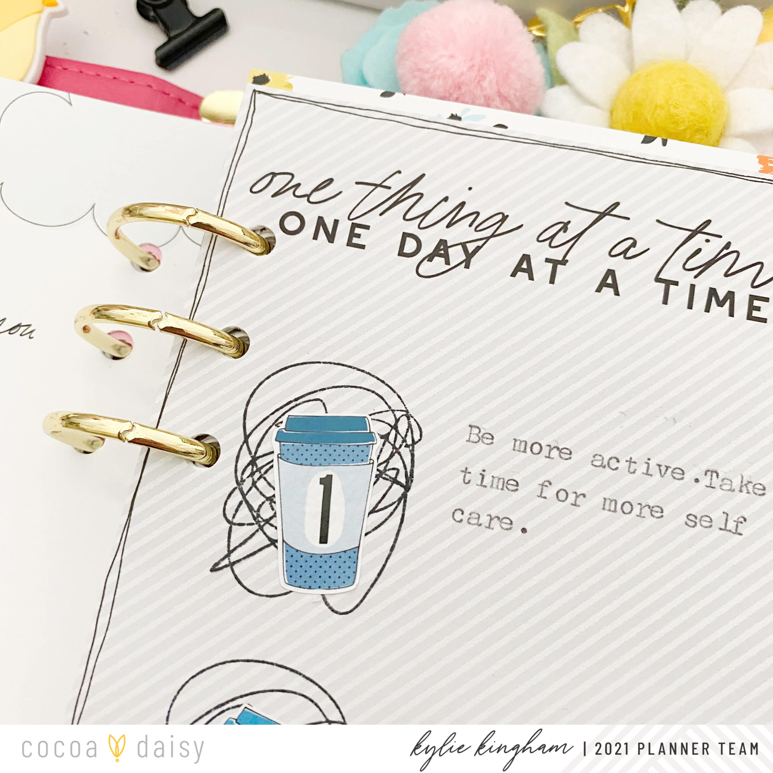 Rounding out my favorite five list is the Cocoa Daisy stamps. Firstly the 4 x 6 Alpha stamps. I love to use Alpha stickers or Alpha stamping in my planner pages and these particular stamps have a wonderful slim line design to them. They look great for adding a title, highlighting an important reminder or using as a date stamp too!