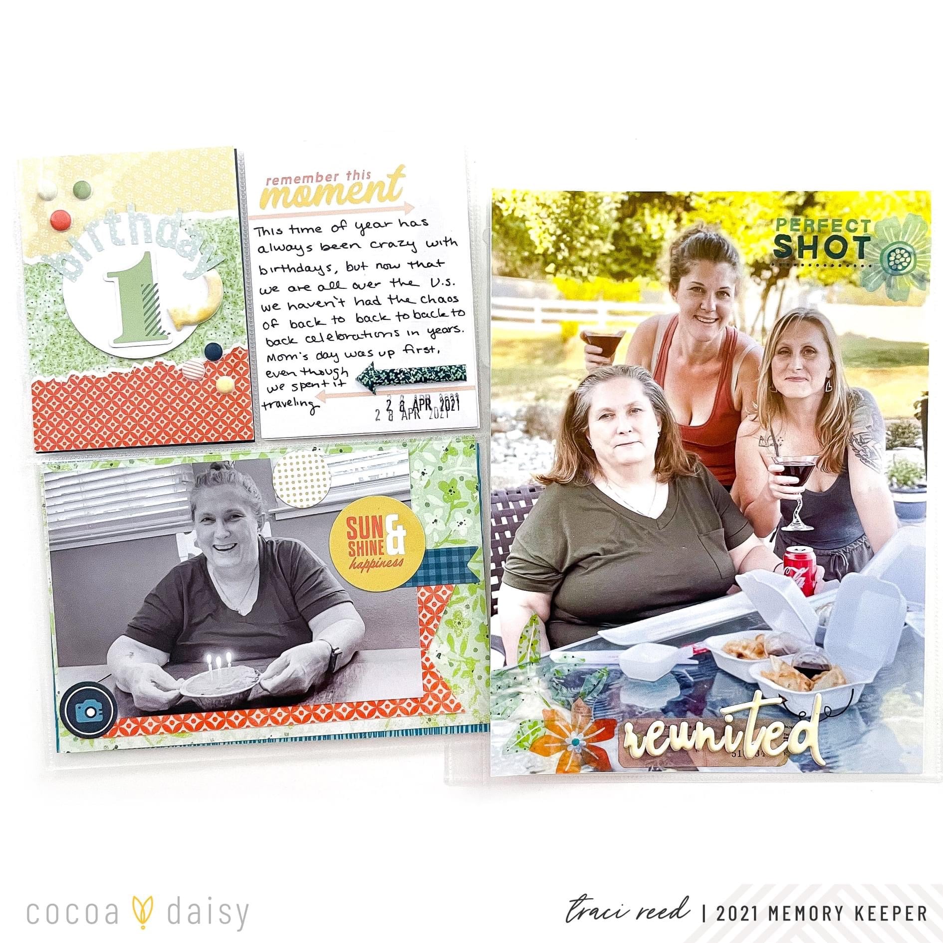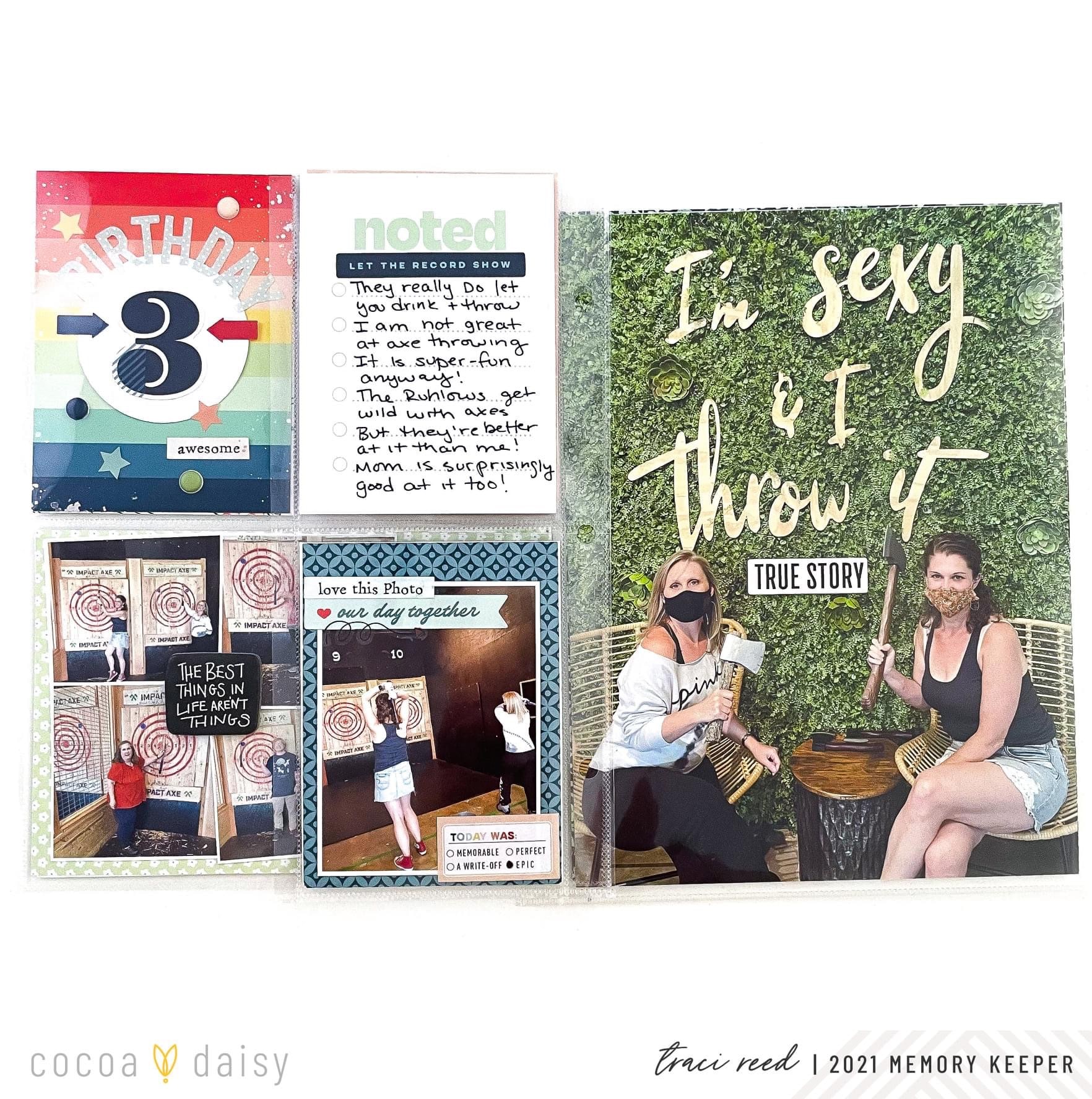 2) I created 3 title cards with the 1, 2, and 3 die cuts that all look similar because we were celebrating 3 birthdays on vacation. This made it easy to draw attention to the birthday celebration threads and gave my pages a consistent look.