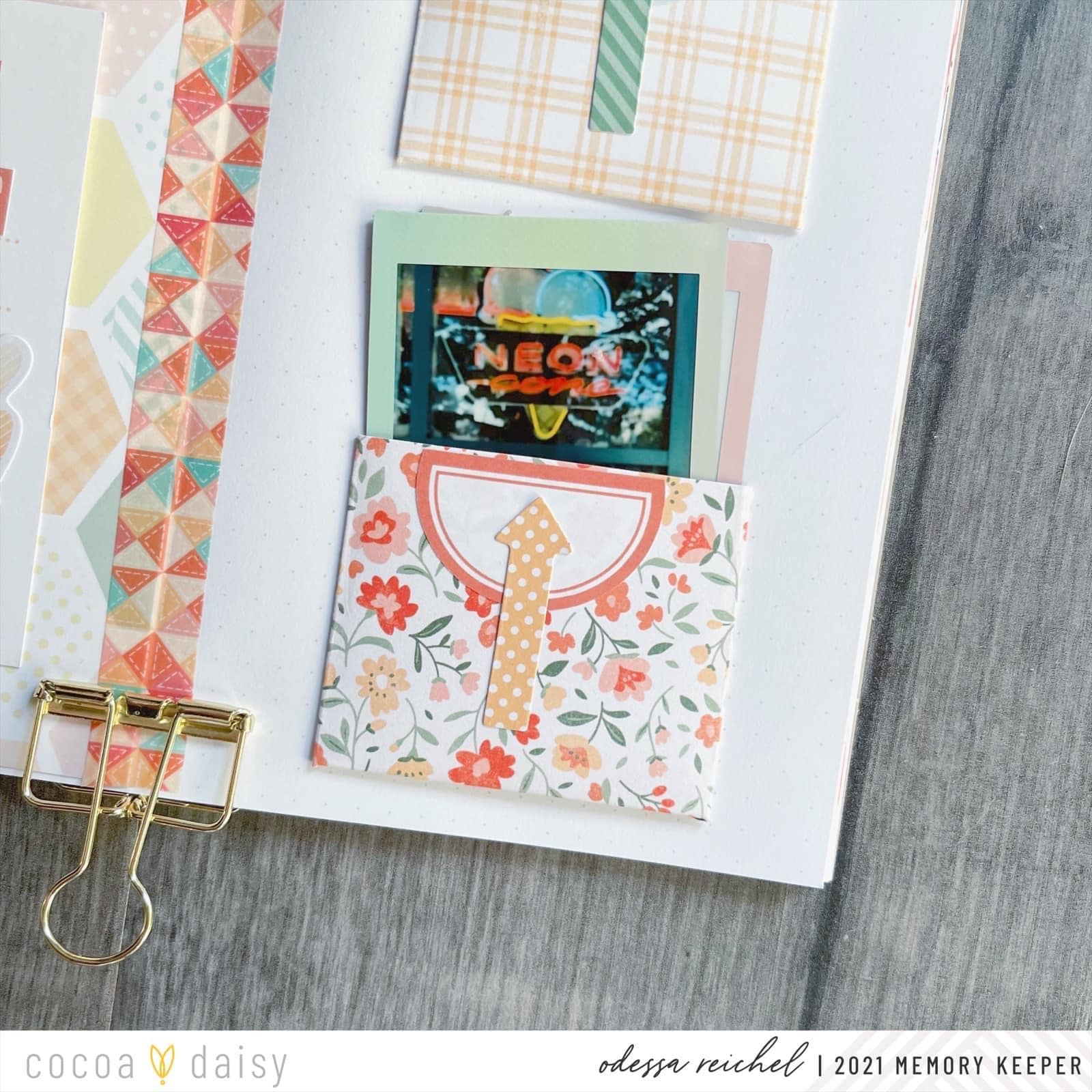 Odessa also enjoys creating pockets for her memory keeping layouts,