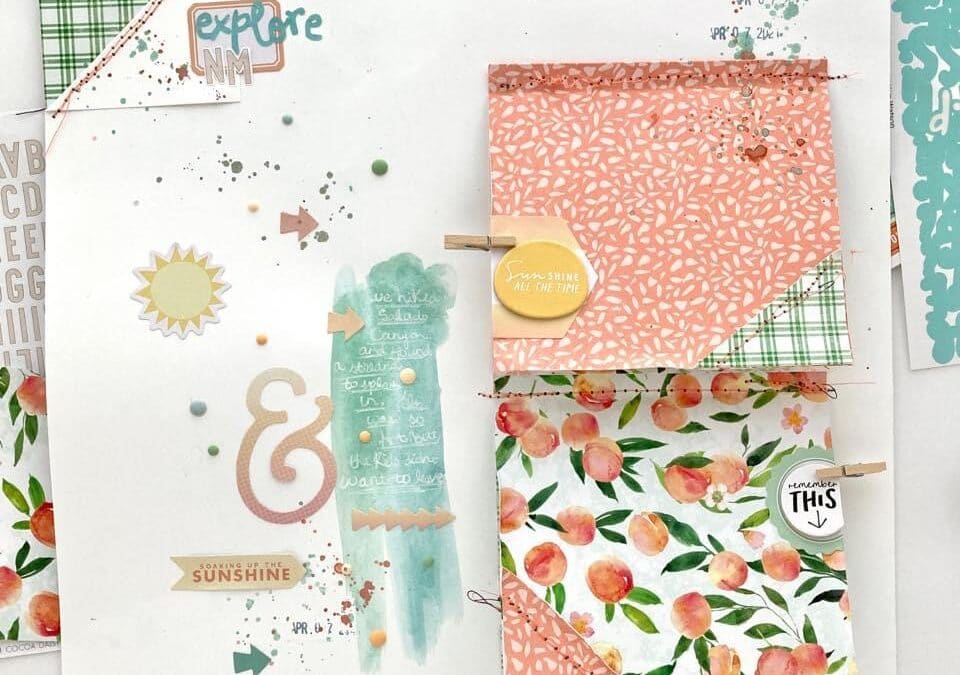 The Peach Ridge Collection has so many sentiments about the sunshine and outdoors which pairs perfectly for the theme of my layout: exploring New Mexico, a land of enchantment where the sun shines 90% of the time. I used a darling “got that sunshine in my pocket” phrase sticker from the Peach Ridge Travelers Notebook Memory Keeping Kit to add on a photo of my daughter skipping across a little stream in this desert climate we live in.
