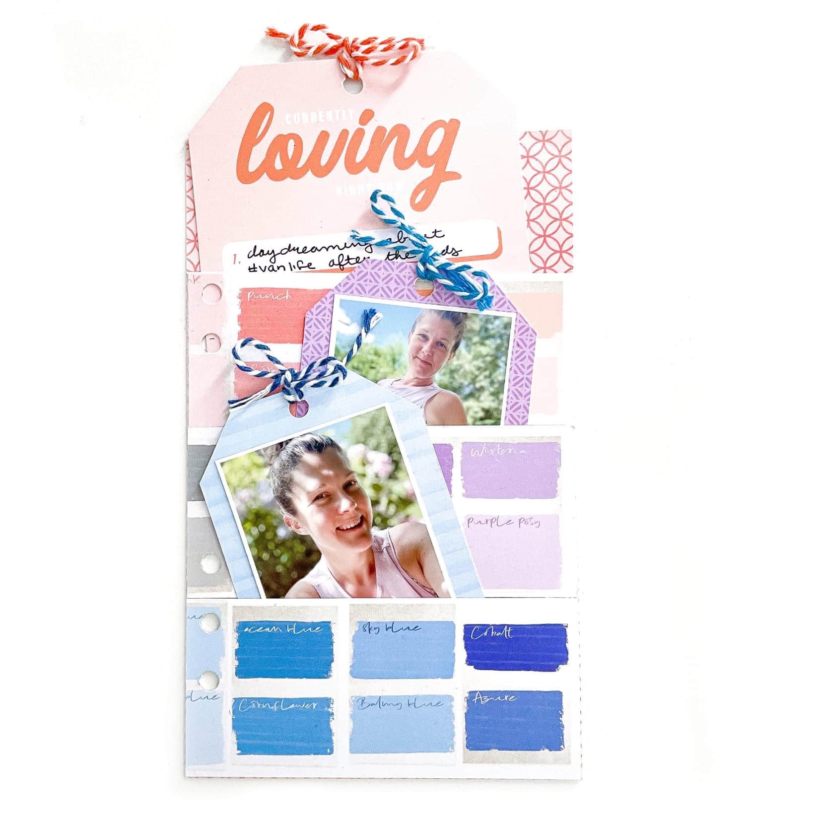 On the left side of the layout, I used die-cut sticker elements from the Travelers Notebook Memory Keeping Kit to draw the eye in towards the flip-up papers. In the video, I share how to slide this into a traditional album inside a page protector, all while inviting the person flipping through the album to view the photos. Have you ever loved papers so much you wanted to let them shine on a layout?