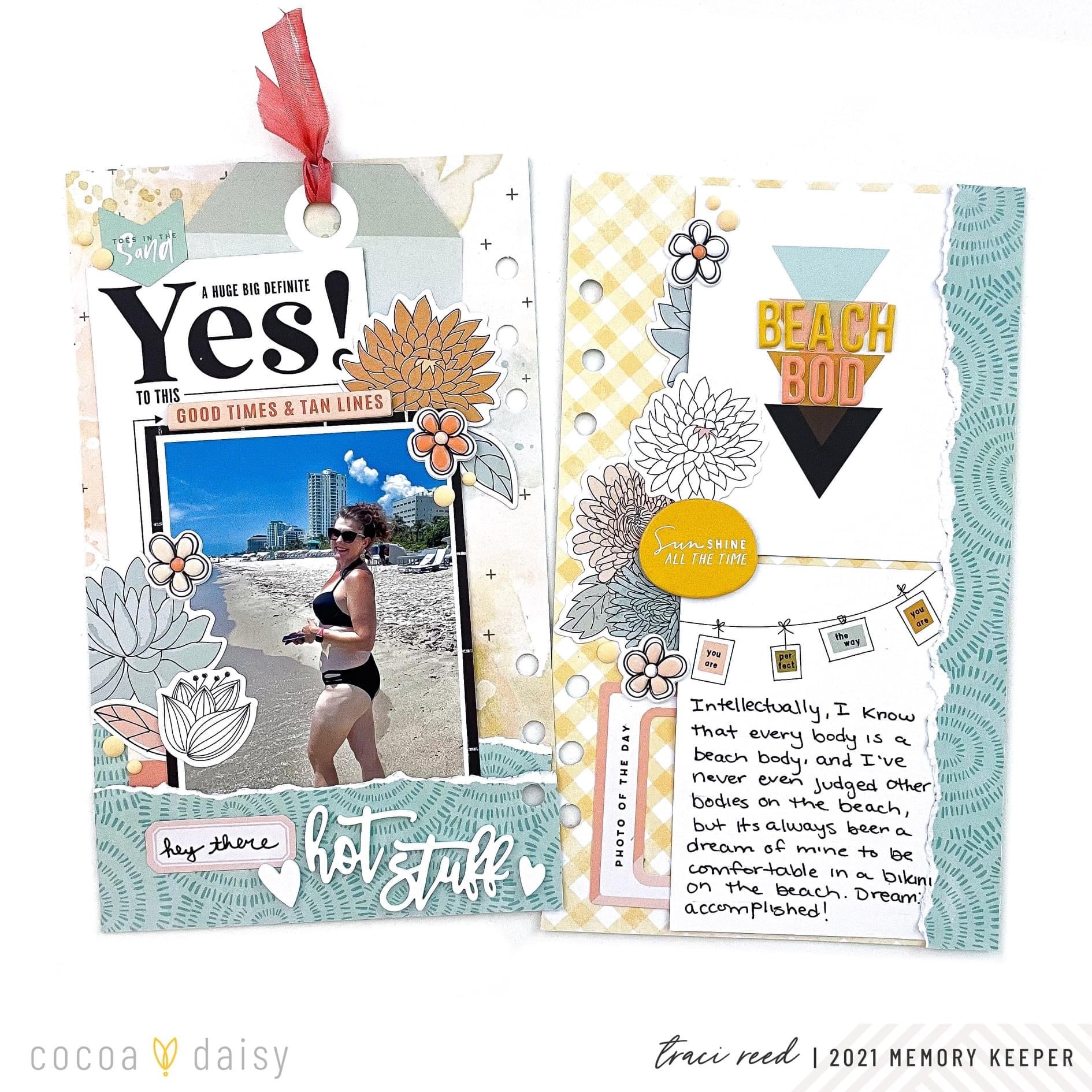 Traci used a specific color to tie the last few collections together in this spread.