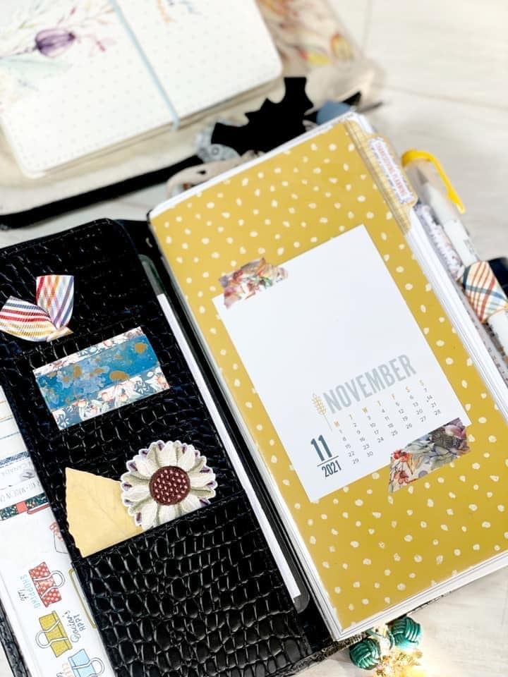 For my final dashboard, I layered some teal paper from the Gather Planner Kit with a mustard-colored dashboard and I love the contrast! This was a personal-size dashboard from the Gather Planner Dashboard Kit that I trimmed down. I love that the dashboard kit comes with both personal size and A5 dashboards so that I can trim and manipulate them to fit whatever size planner I’m in.