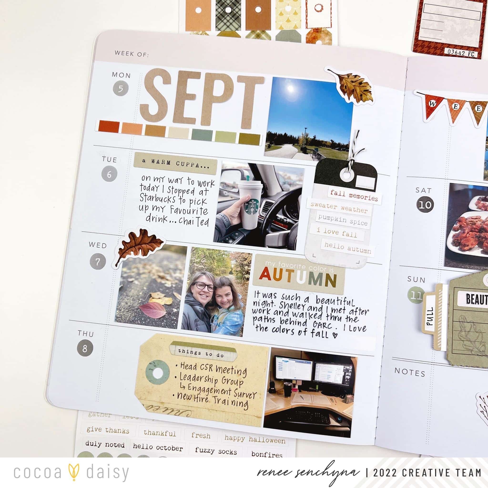 Hello Crafty Friends, Fall is in the air and we love it here. Bring on the pumpkin spice drinks, the cute fall mugs, back to school, and cozy days reading all the books! I created the Memory planner layout using bits from the Autumn Thicket Modern Memory Keeping Kit.